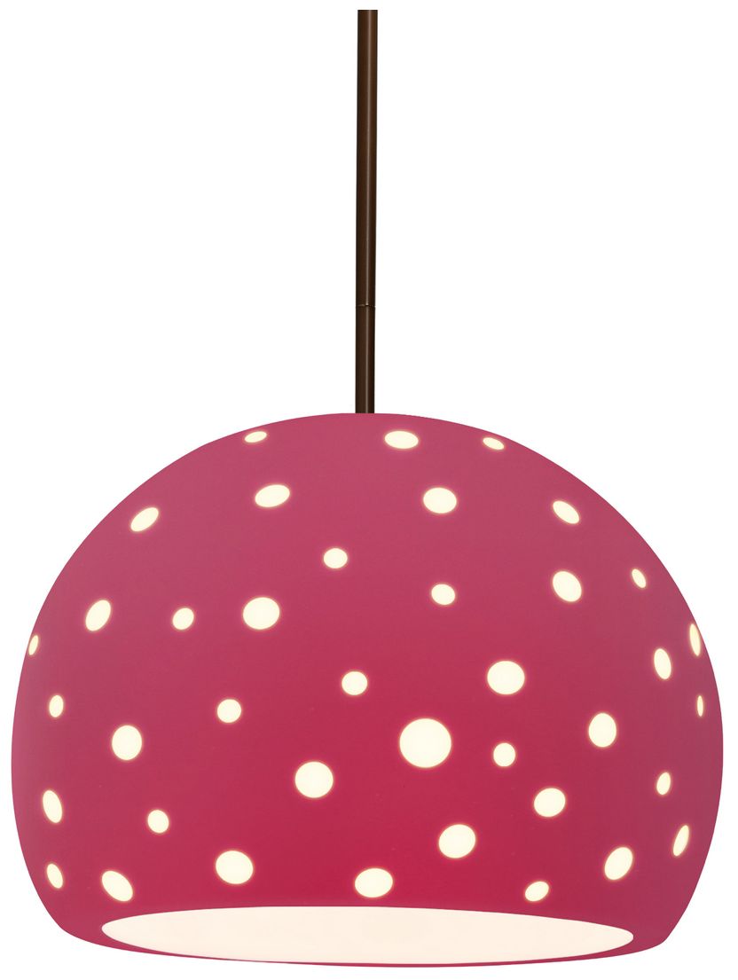 Perforated Globe 12.25"W Cerise, Dark Bronze Pendant - Rigid Stem