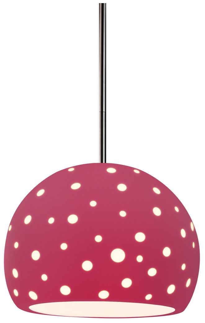 Perforated Globe 12.25"W Cerise, Polished Chrome LED Pendant - Rigid Stem