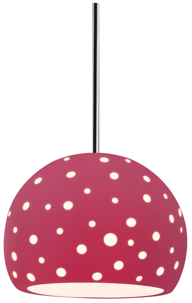 Perforated Globe 10"W Cerise, Polished Chrome LED Pendant - Rigid Stem