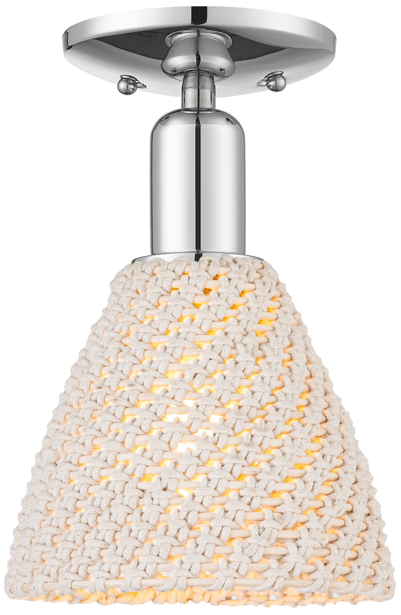 Natural Ballston Dome 8"W Chrome Semi-Flush With Natural Fiber Shade