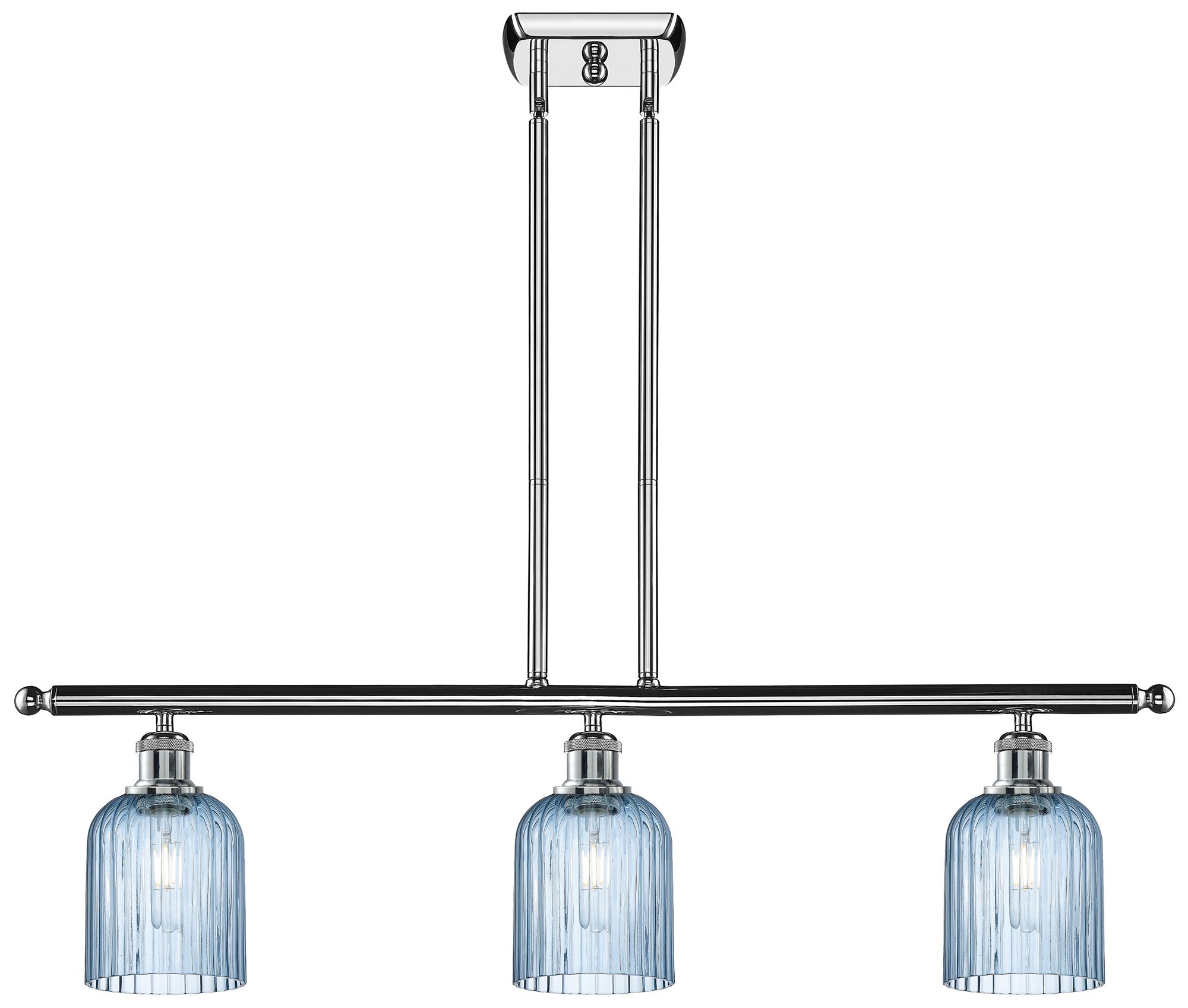 Ballston Bridal Veil 3 Light 36" Stem Hung Island Light Chrome Blue Shade