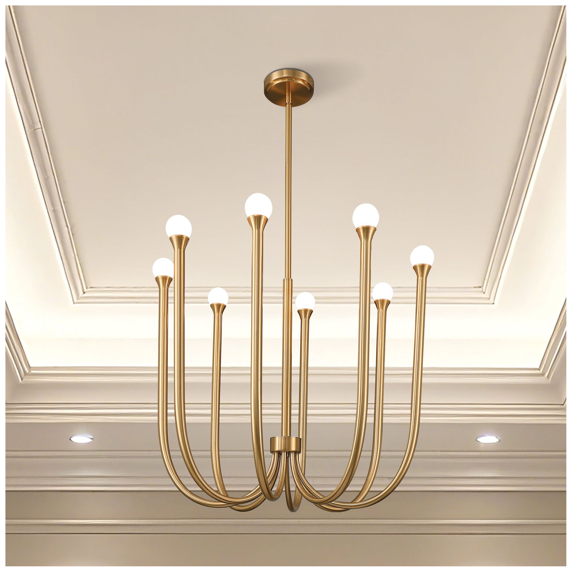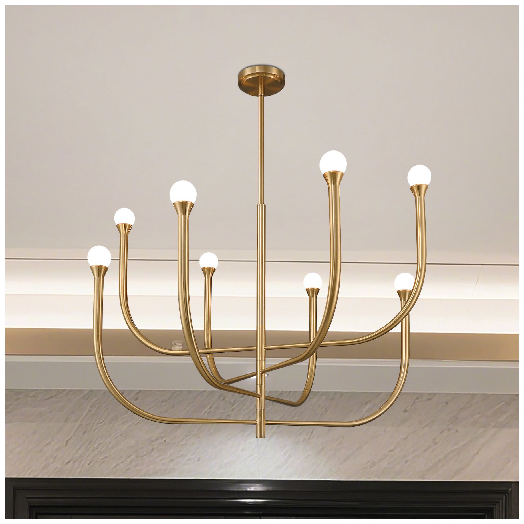 Thesis Dahlia 36" 8 Light Brass Chandelier with Opal Glass Shades