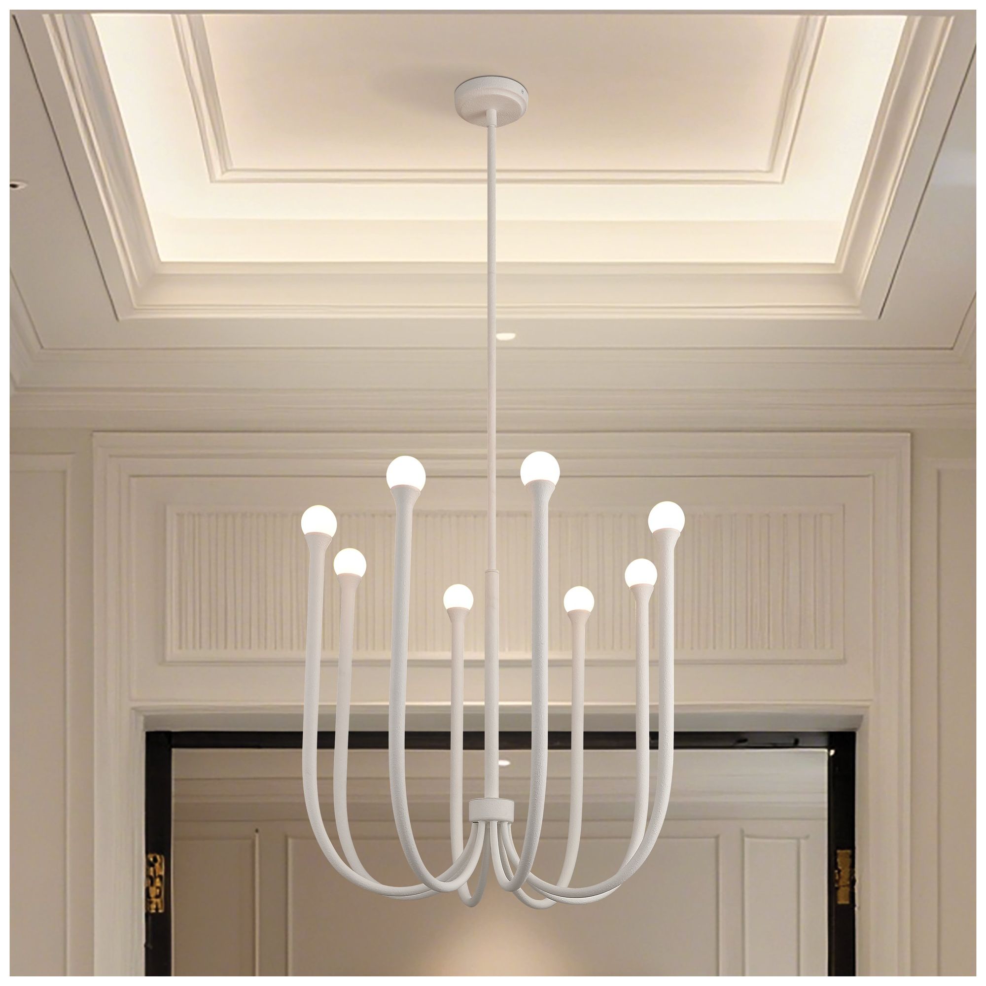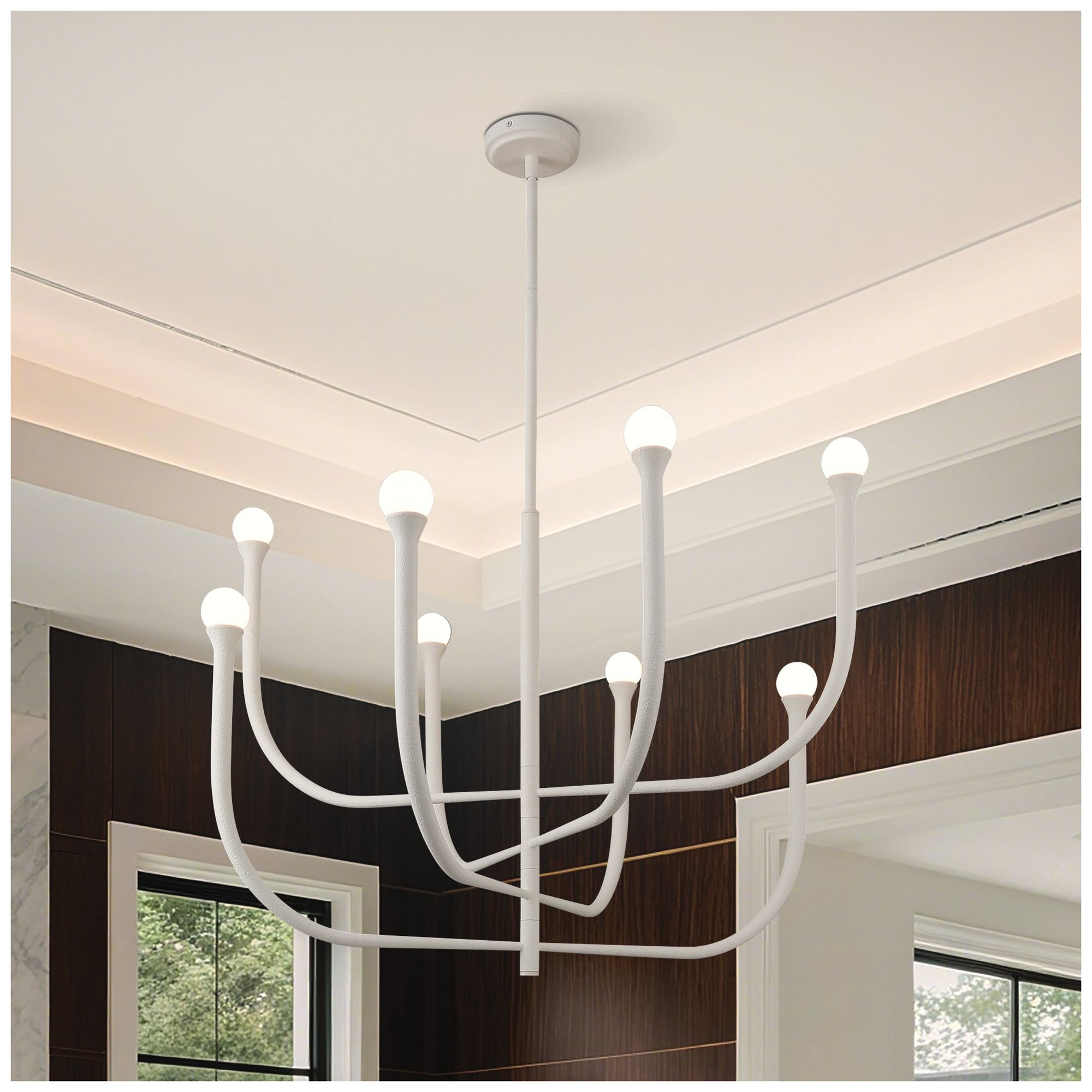 Thesis Dahlia 36" 8 Light Textured White Chandelier with Opal Glass Shades