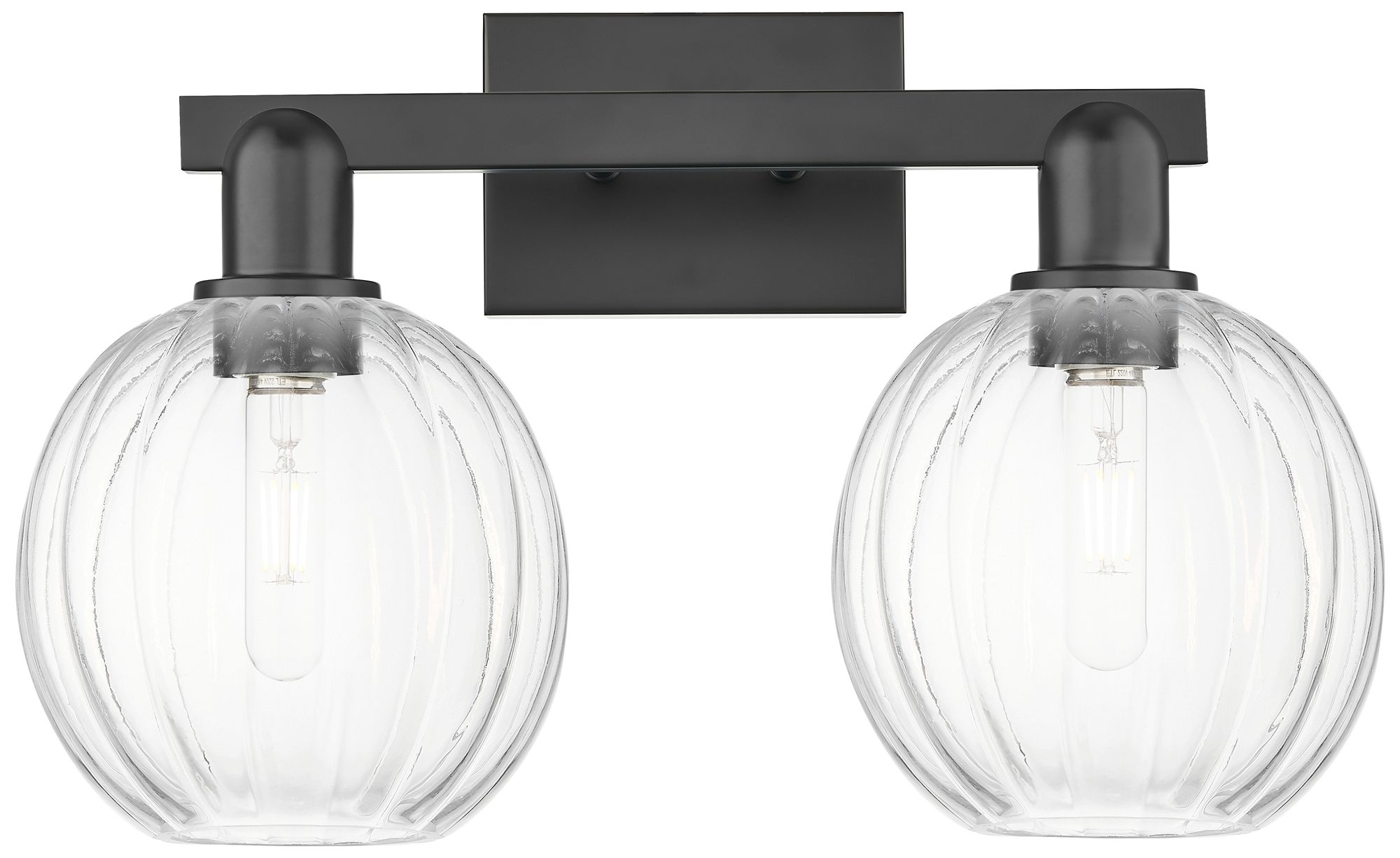 Preston 16"W 2 Light Black Bath Vanity Light With Globe Clear Shade