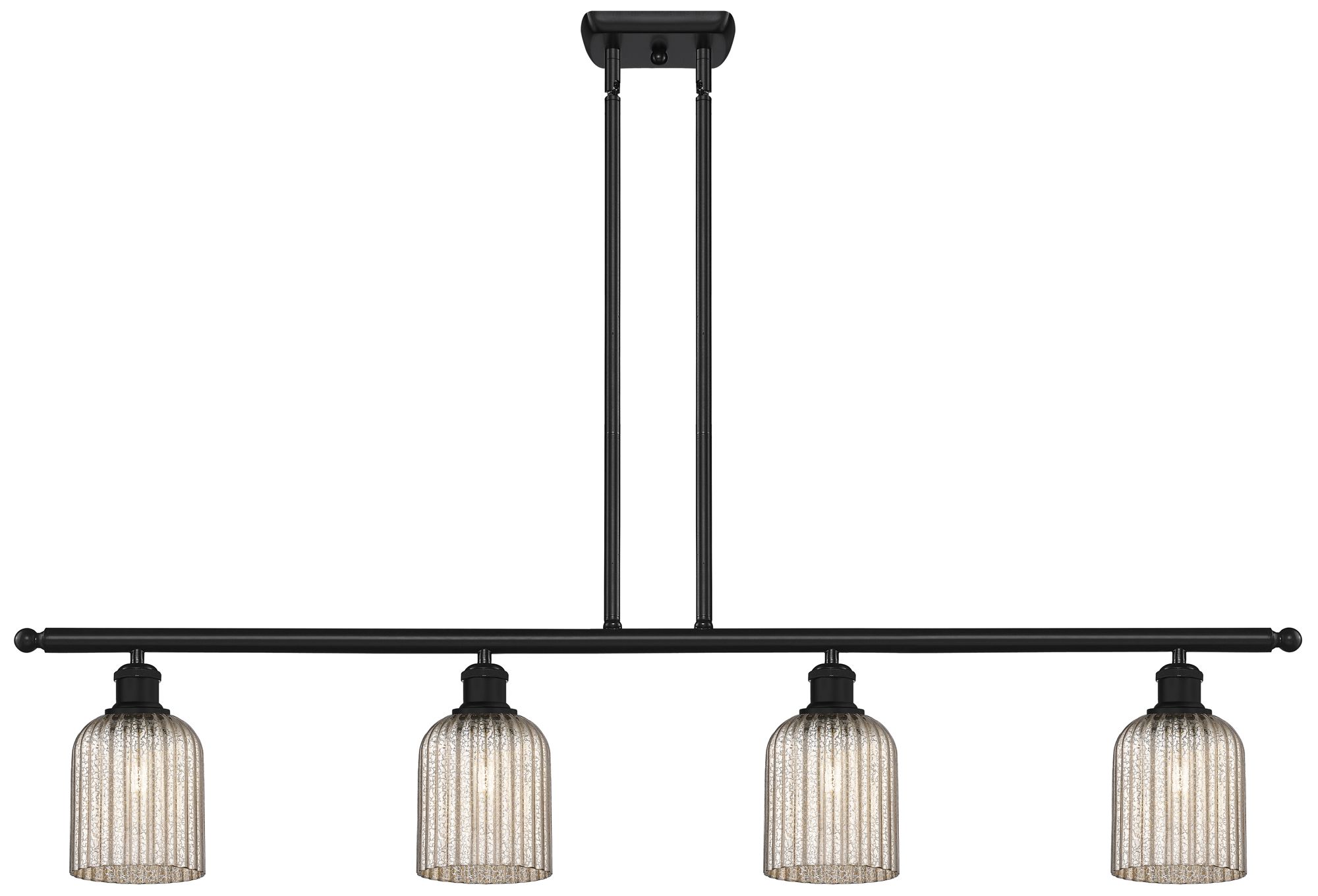 Ballston Bridal Veil 4 Light 48" Stem Hung Island Light Black Mercury Shade