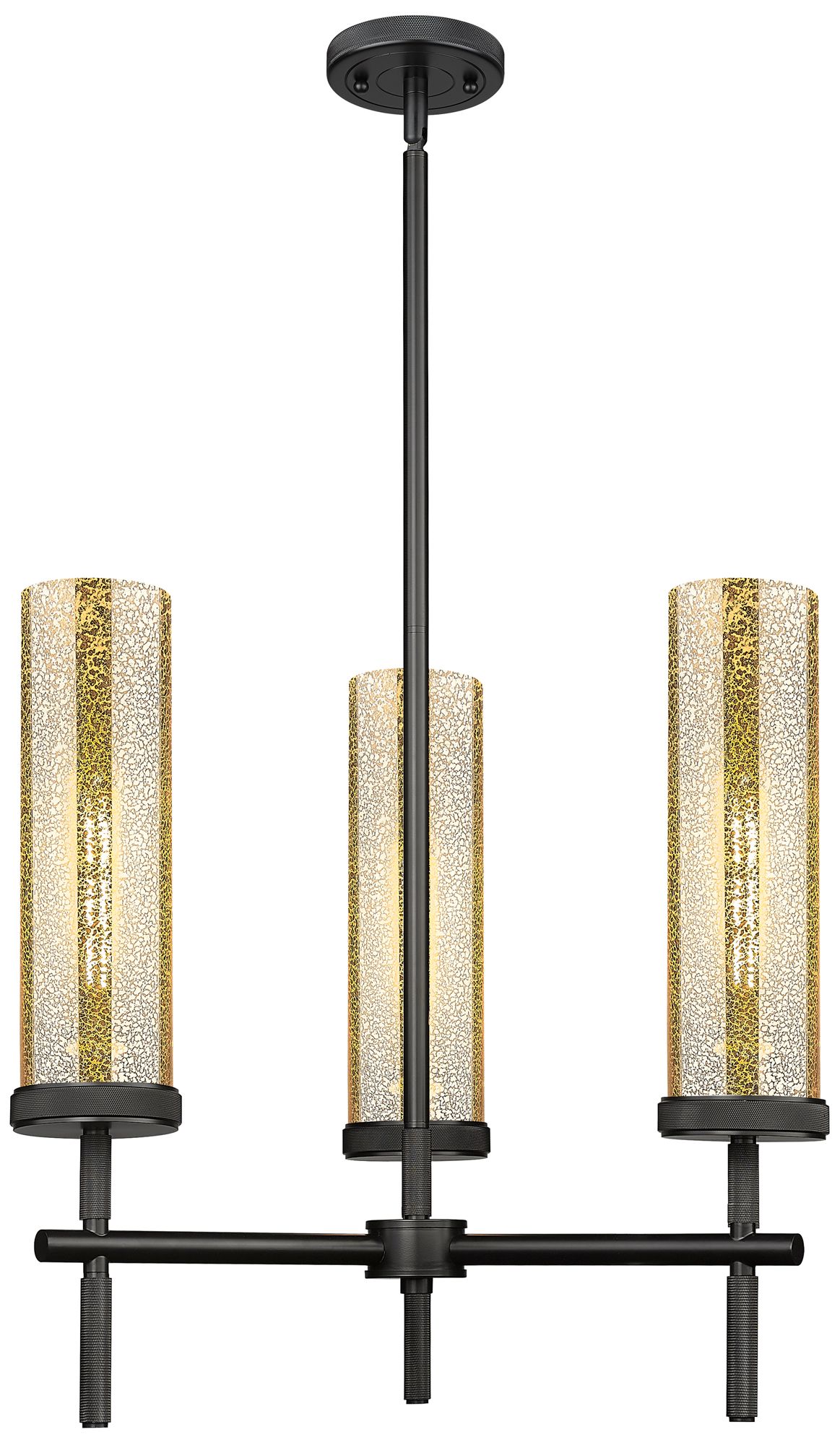Lincoln 12"W 3 Light Matte Black Stem Hung Pendant With Mercury Shade