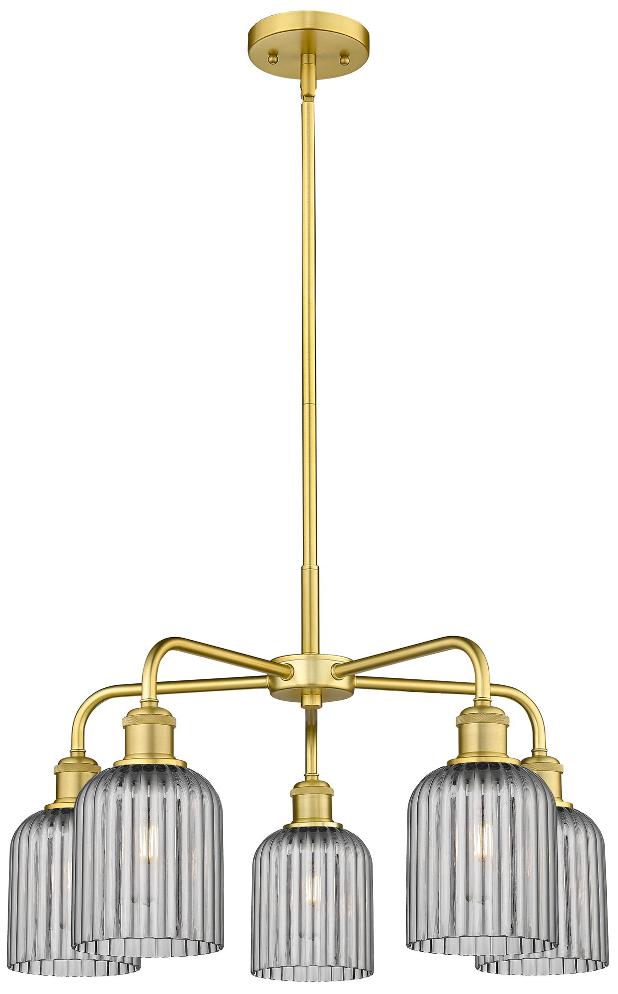 Bell 26"W 5 Light Satin Gold Stem Hung Chandelier w/ Clear Deco Swirl