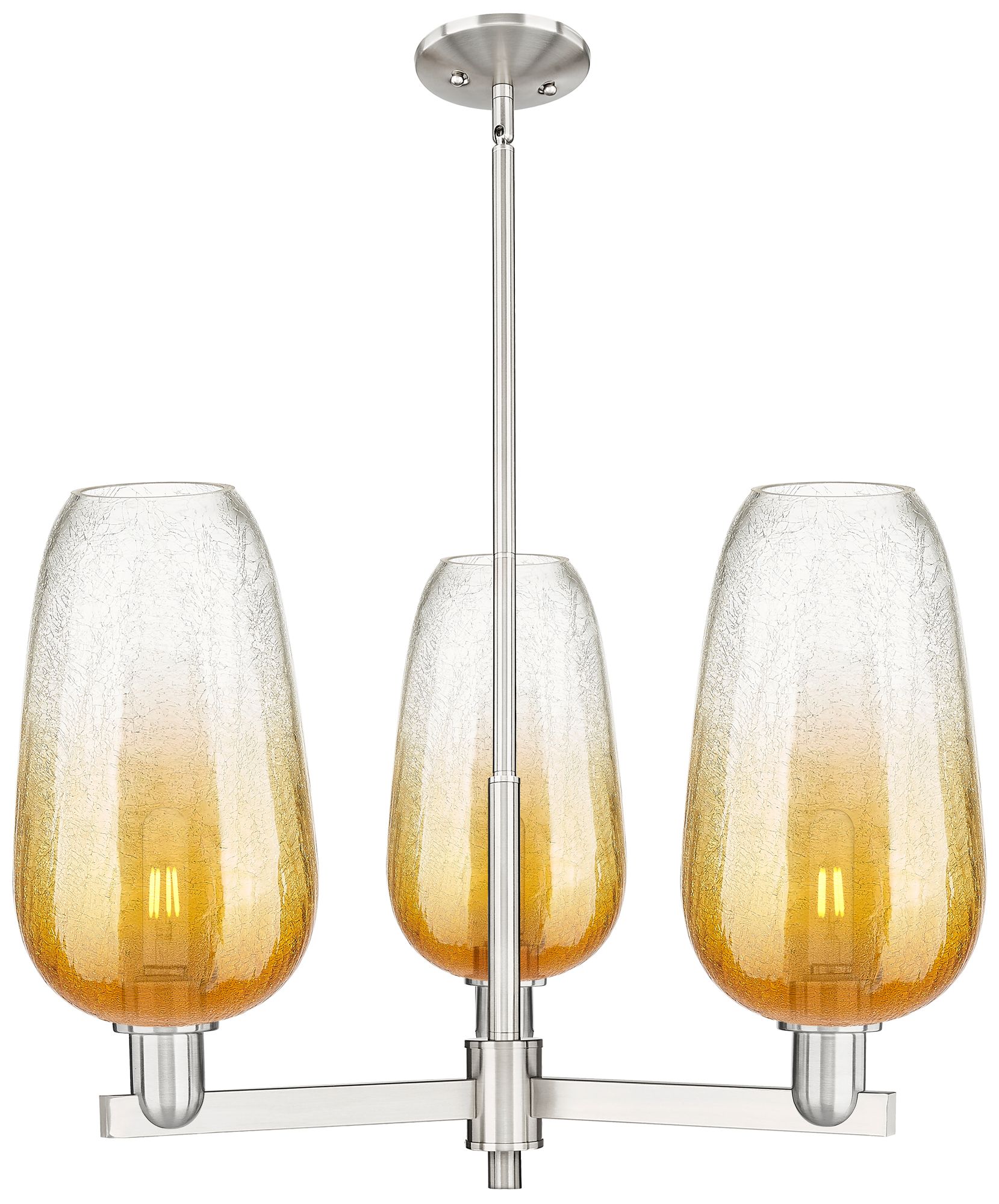 Brookhaven Flute 18"W 3-Lt Satin Nickel Stem Chandelier w/ Amber Shade