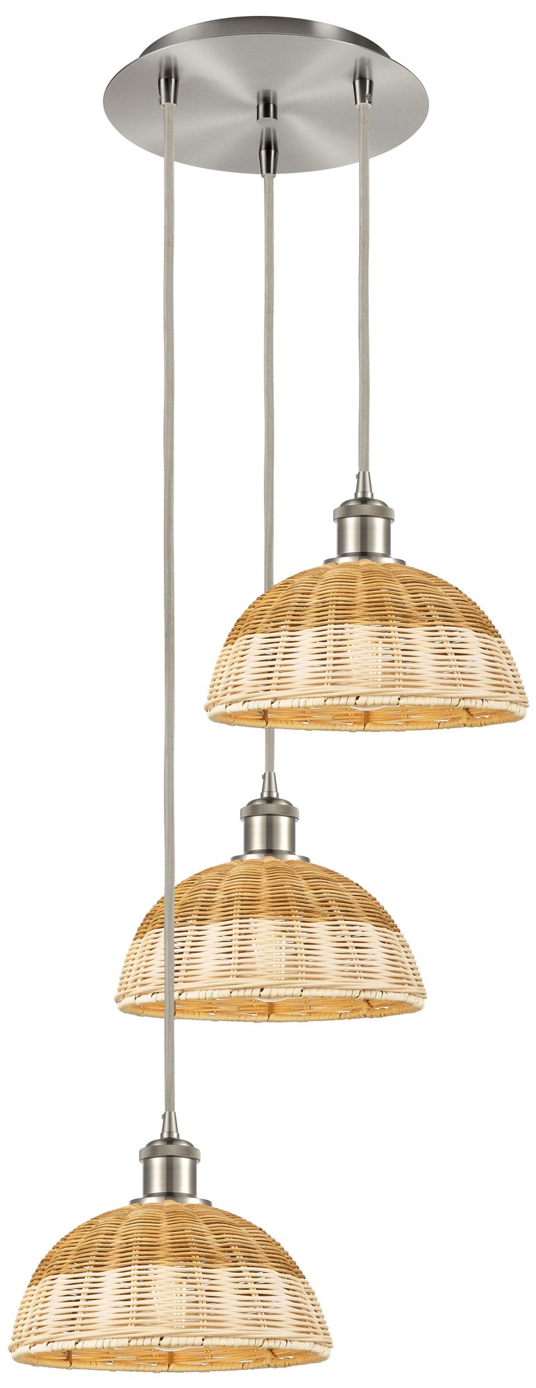 Ballston Bristol Natural II 16"W 3 Light Brushed Nickel Cord Pendant