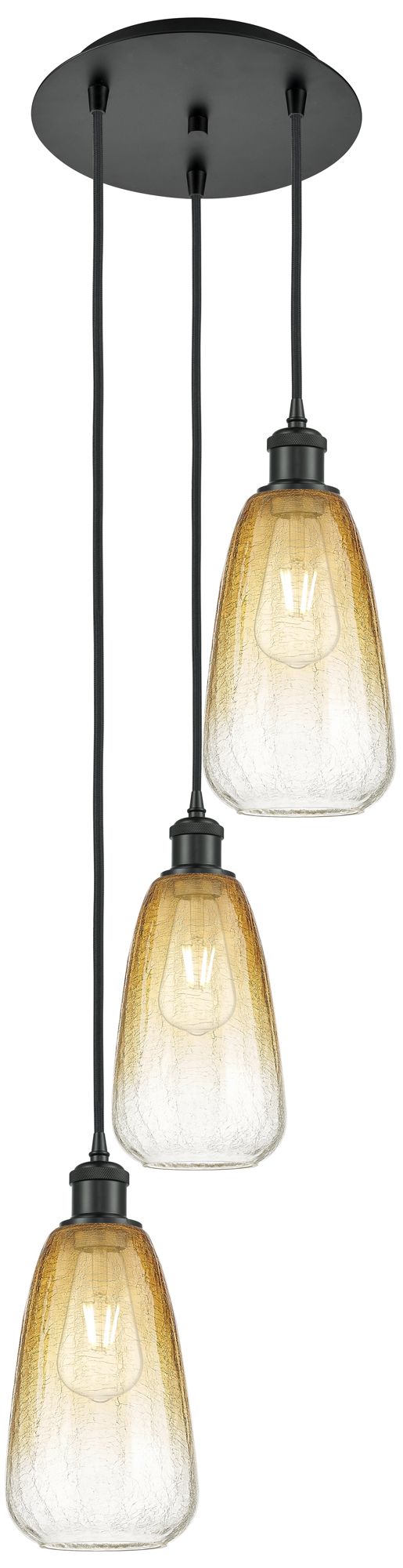 Ballston Brookhaven Almond 13"W 3-Lt Black Cord Pendant w/ Amber Shade