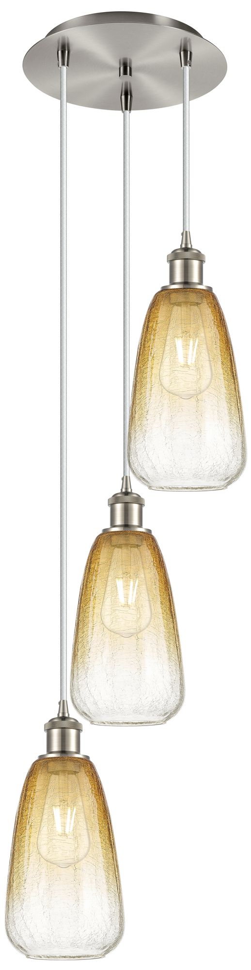 Ballston Brookhaven Almond 13"W 3-Lt Nickel Cord Pendant w/ Amber Shade