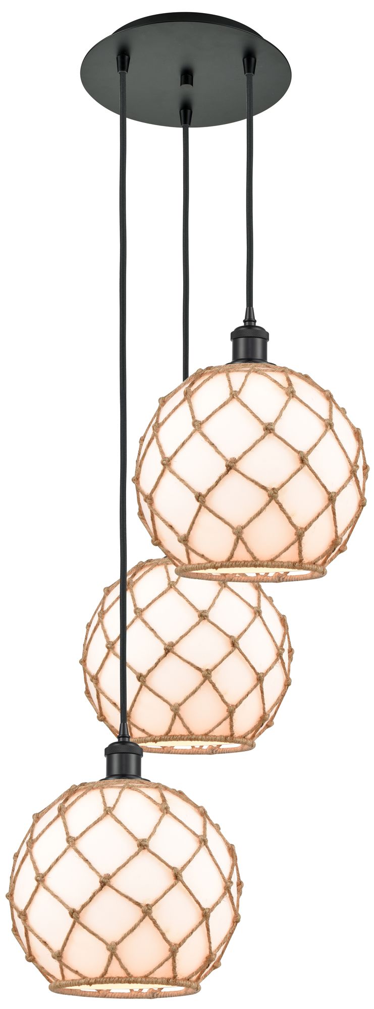 Ballston Farmhouse Rope 15"W 3 Light Black Cord Pendant w/ White Shade