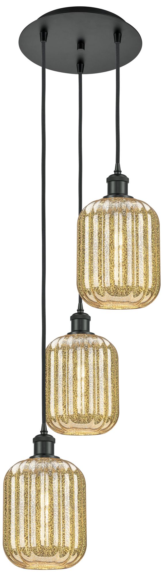 Ballston Preston 13"W 3 Light Black Cord Pendant w/ Mercury Jar Shade