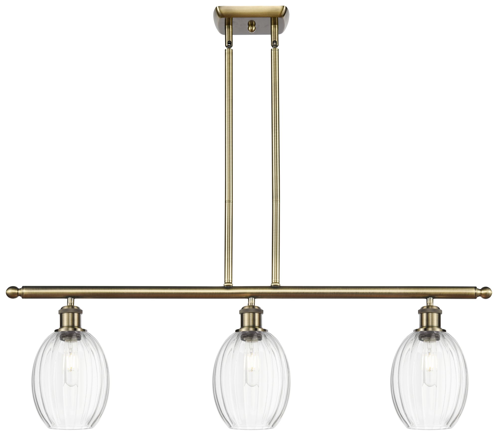 Preston 36" Wide 3-Light Antique Brass Island Light with Clear Shade