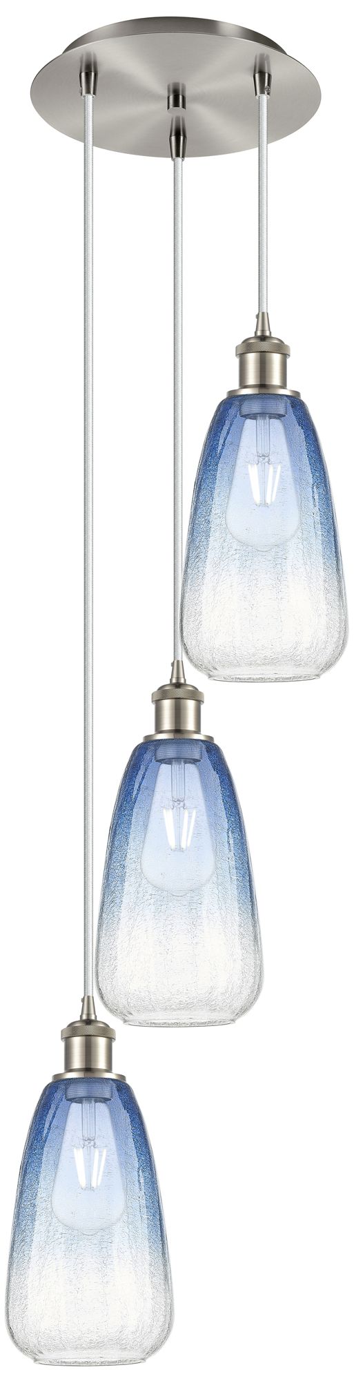 Ballston Brookhaven Almond 13"W 3-Lt Nickel Cord Pendant w/ Sapphire Shade