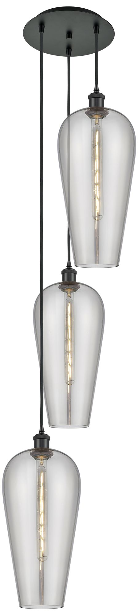 Ballston Chelsea 15"W 3 Light Black Cord Pendant w/ Light Smoke Shade