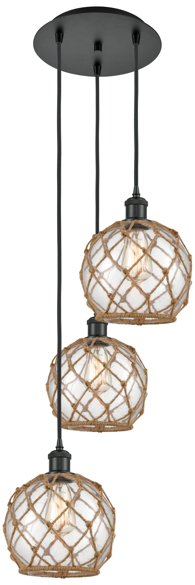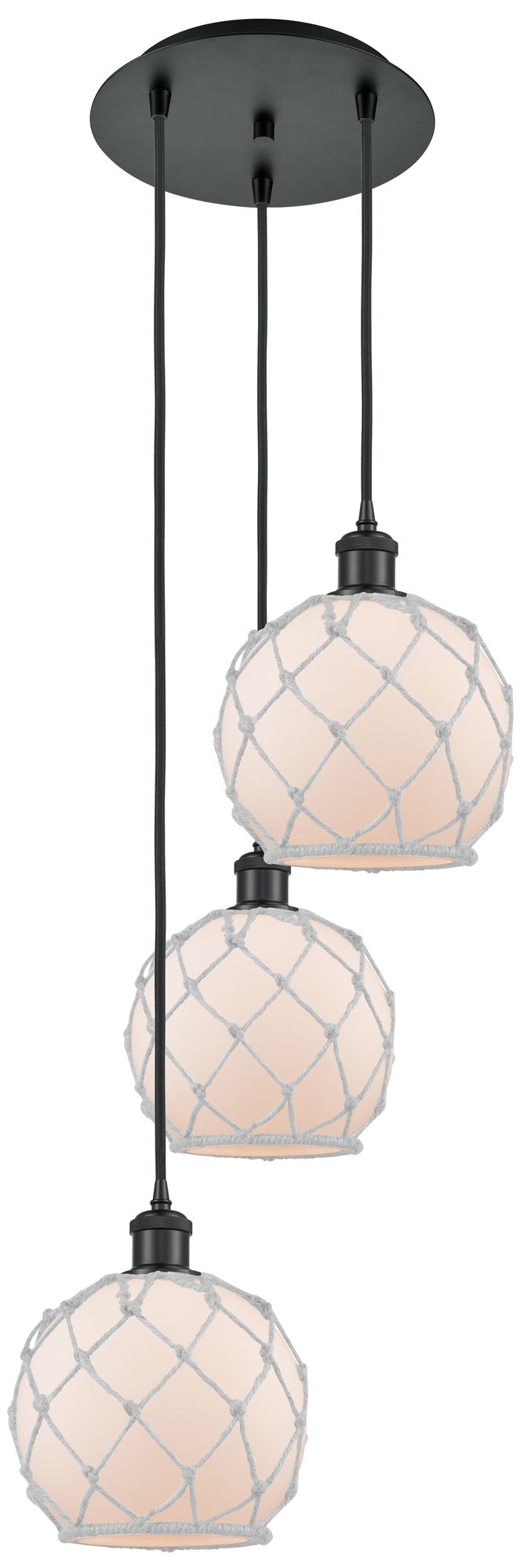 Ballston Farmhouse Rope 15"W 3 Light Black Cord Pendant w/ White Shade