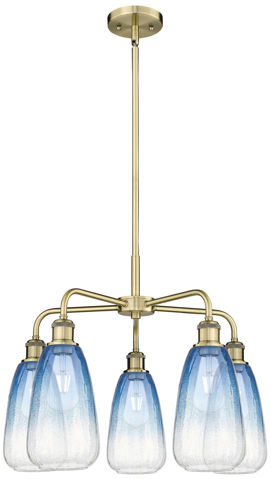 Ballston Brookhaven Almond 25"W 5 Light Brass Stem Chandelier w/ Blue Shade