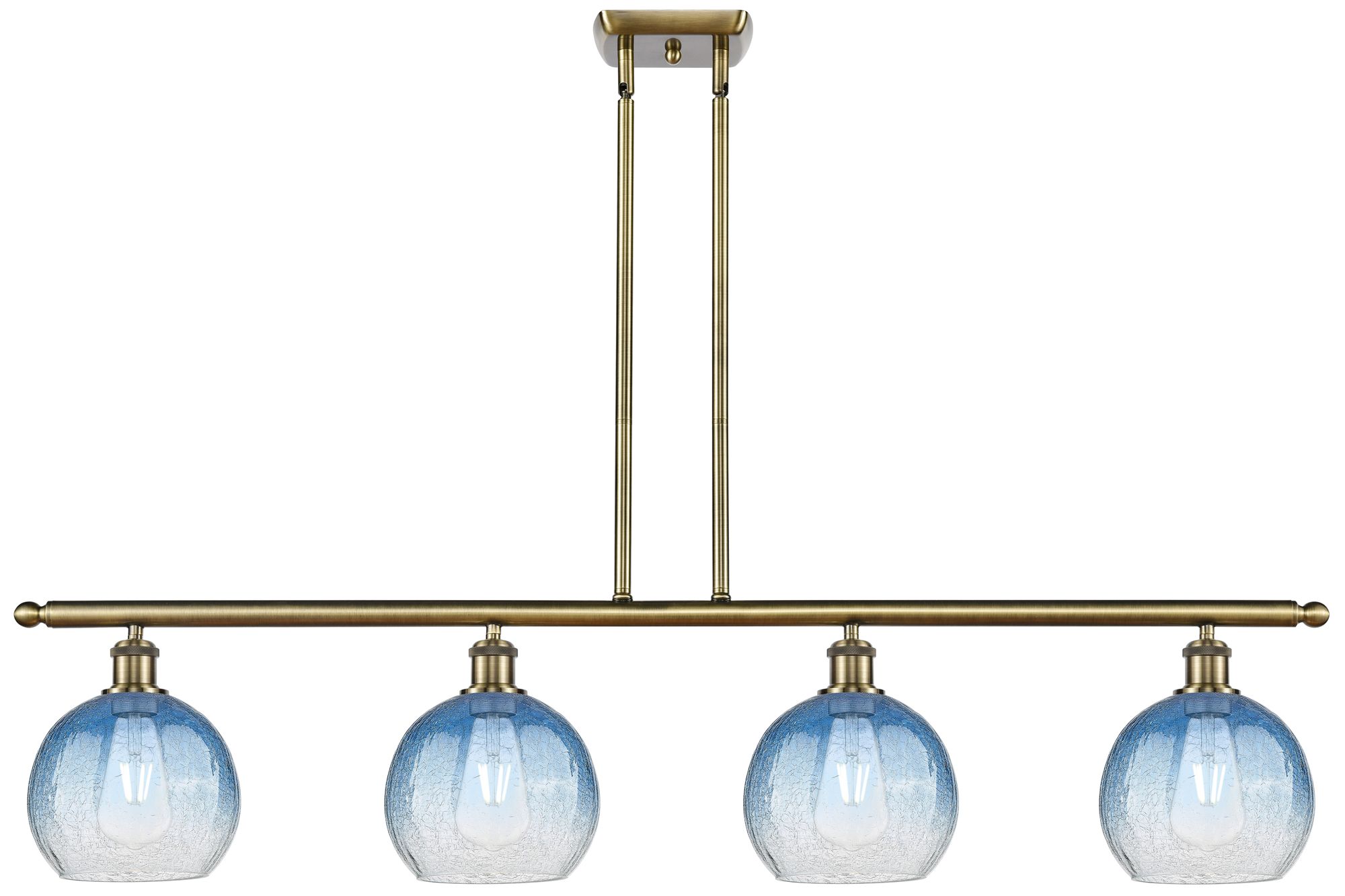 Ballston Brookhaven Globe 48"W 4-Lt Brass Stem Island Light w/ Blue Shade