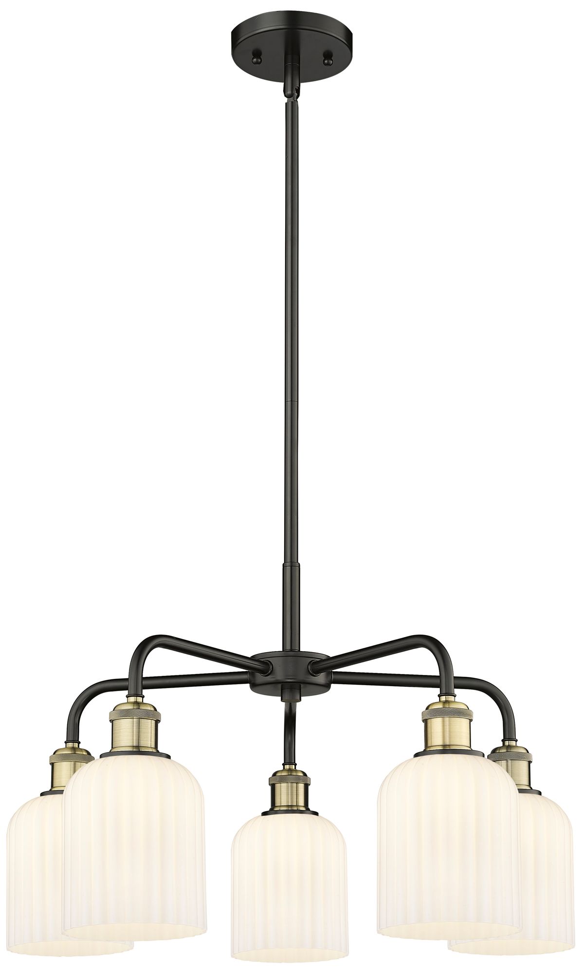 Ballston Bridal Veil 23" 5 Light Stem Hung Chandelier Black w/ White Shade