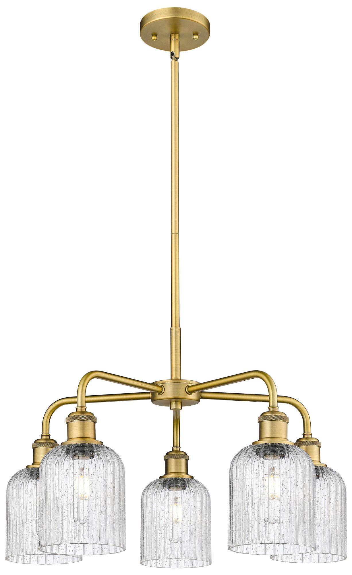 Ballston Bridal Veil 23" 5 Light Stem Hung Chandelier Brass w/ Seedy Shade