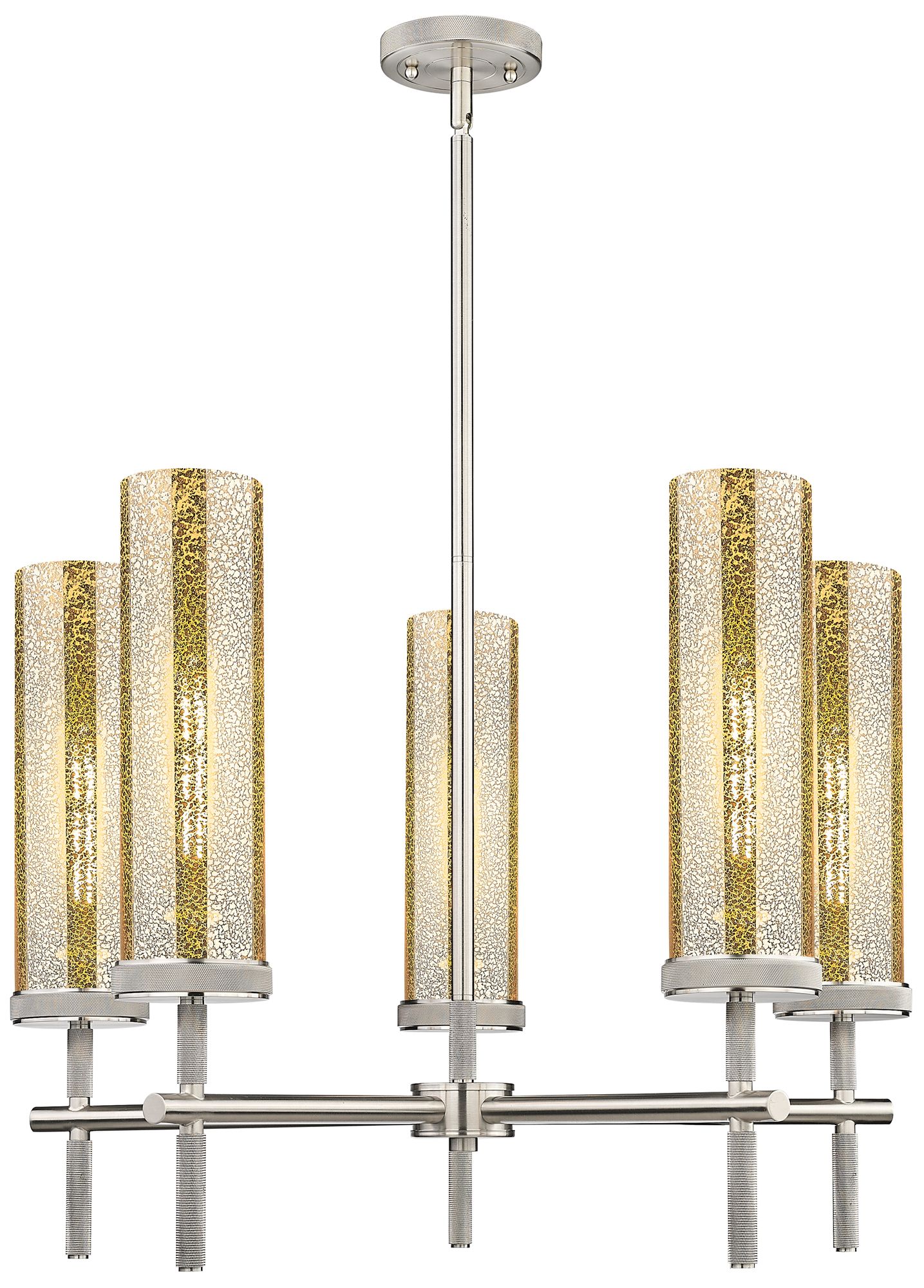 Lincoln 12"W 5 Light Satin Nickel Stem Chandelier With Mercury Shade