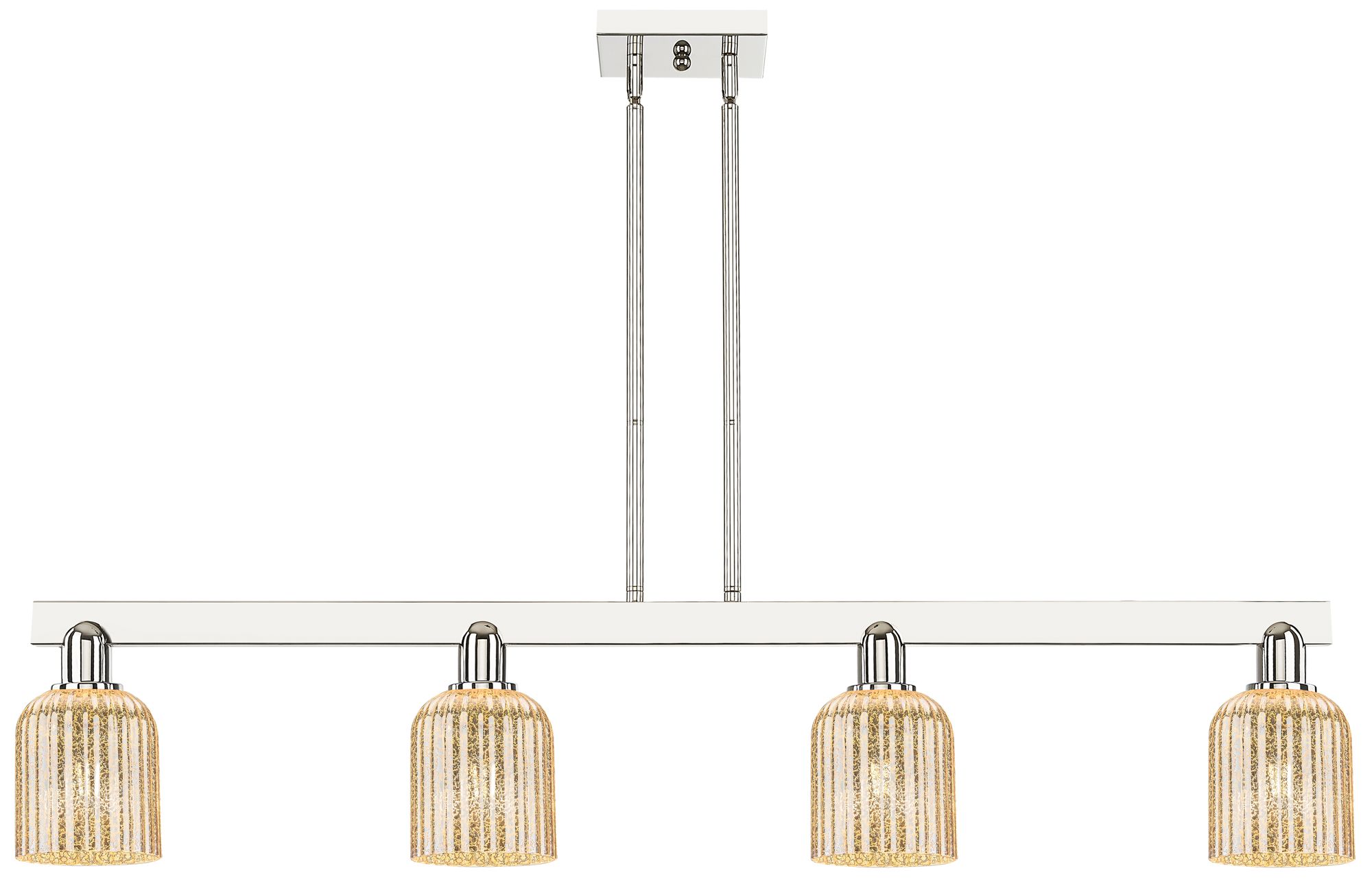 Bridal Veil 48"W 4 Light Nickel Stem Island Light w/ Mercury Shade