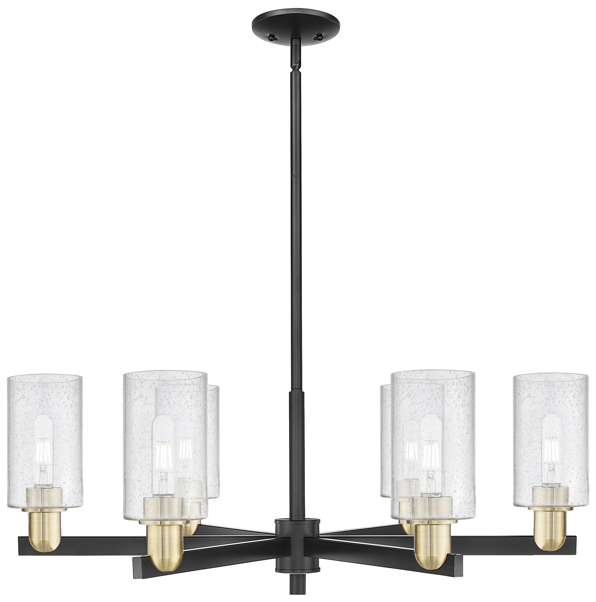 Arcadia Clymer 34"W 6 Light Black Brass Stem Chandelier w/ Seedy Shade