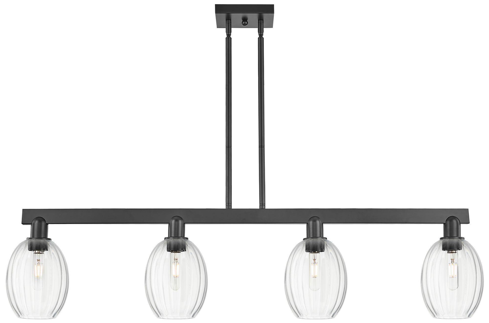 Preston 48"W 4 Light Matte Black Stem Island Light w/ Bell Clear Shade
