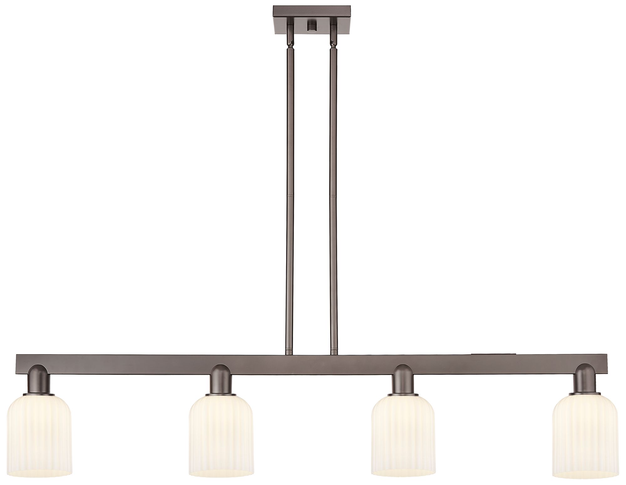Bridal Veil 48"W 4-Lt Oil Rubbed Bronze Stem Island-Lt w/ Gloss White Shade