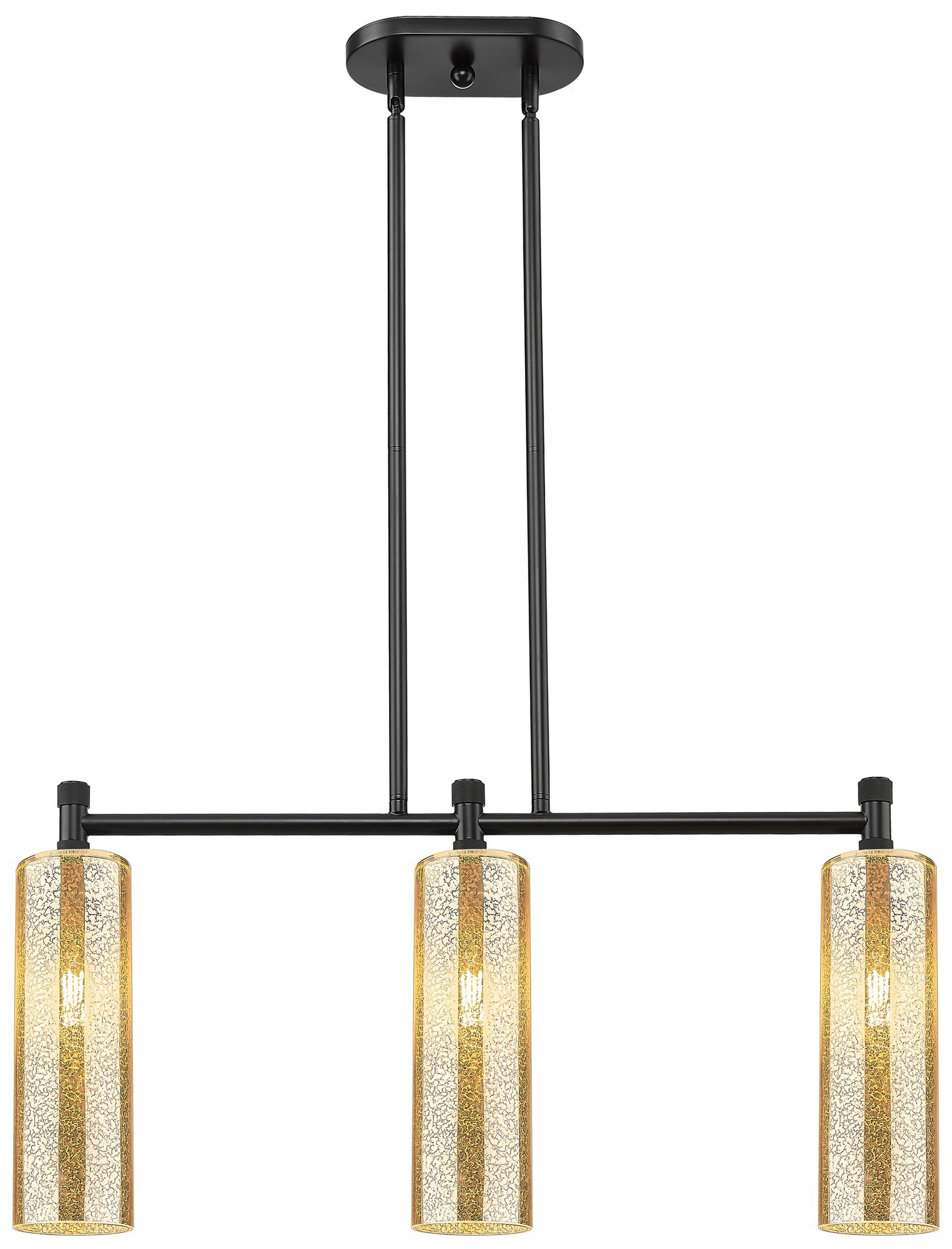 Downtown Crown Point 31"W 3 Light Black Island Light w/ Mercury Shade