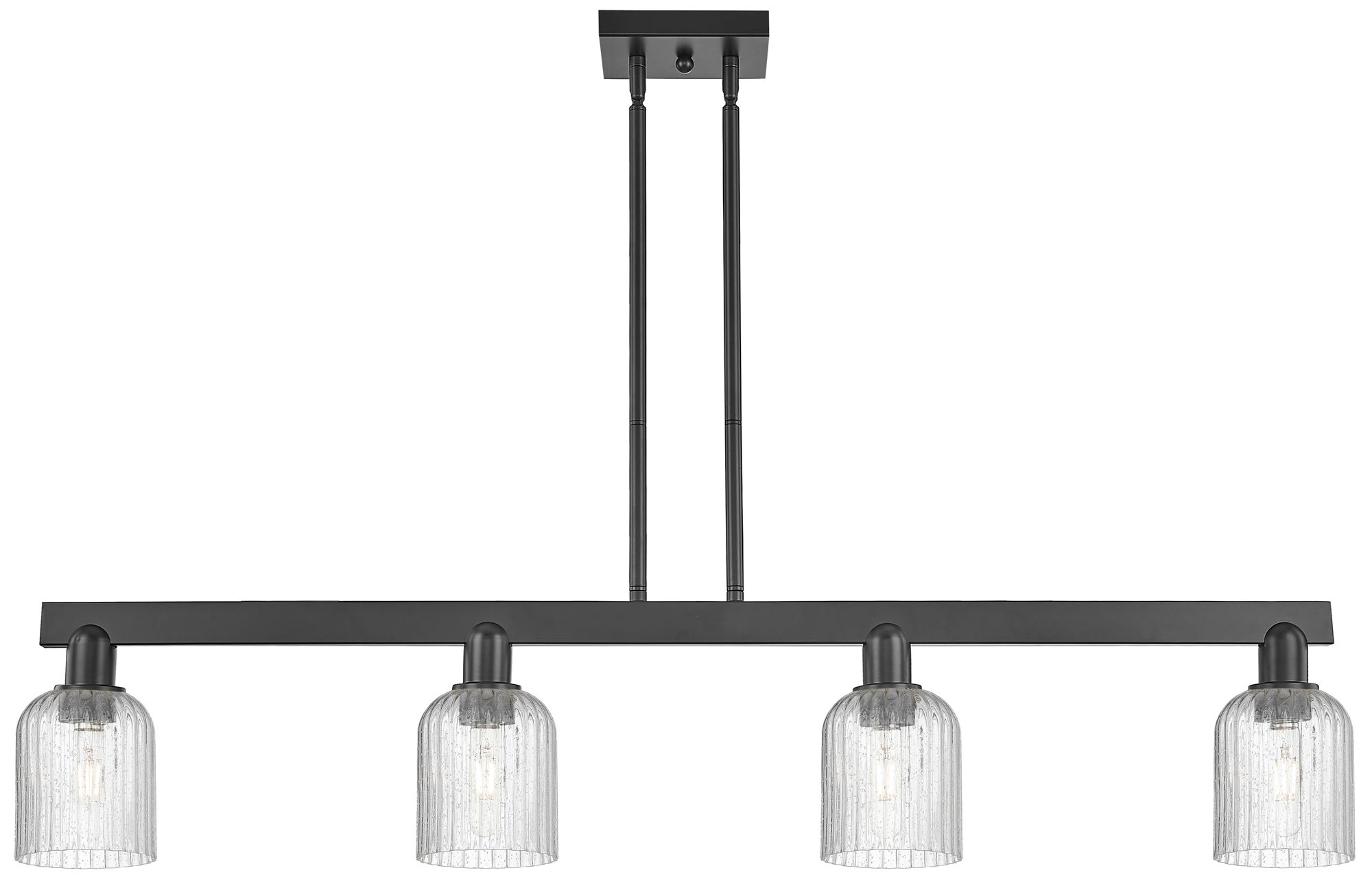 Bridal Veil 48"W 4 Light Matte Black Stem Island Light With Seedy Shade