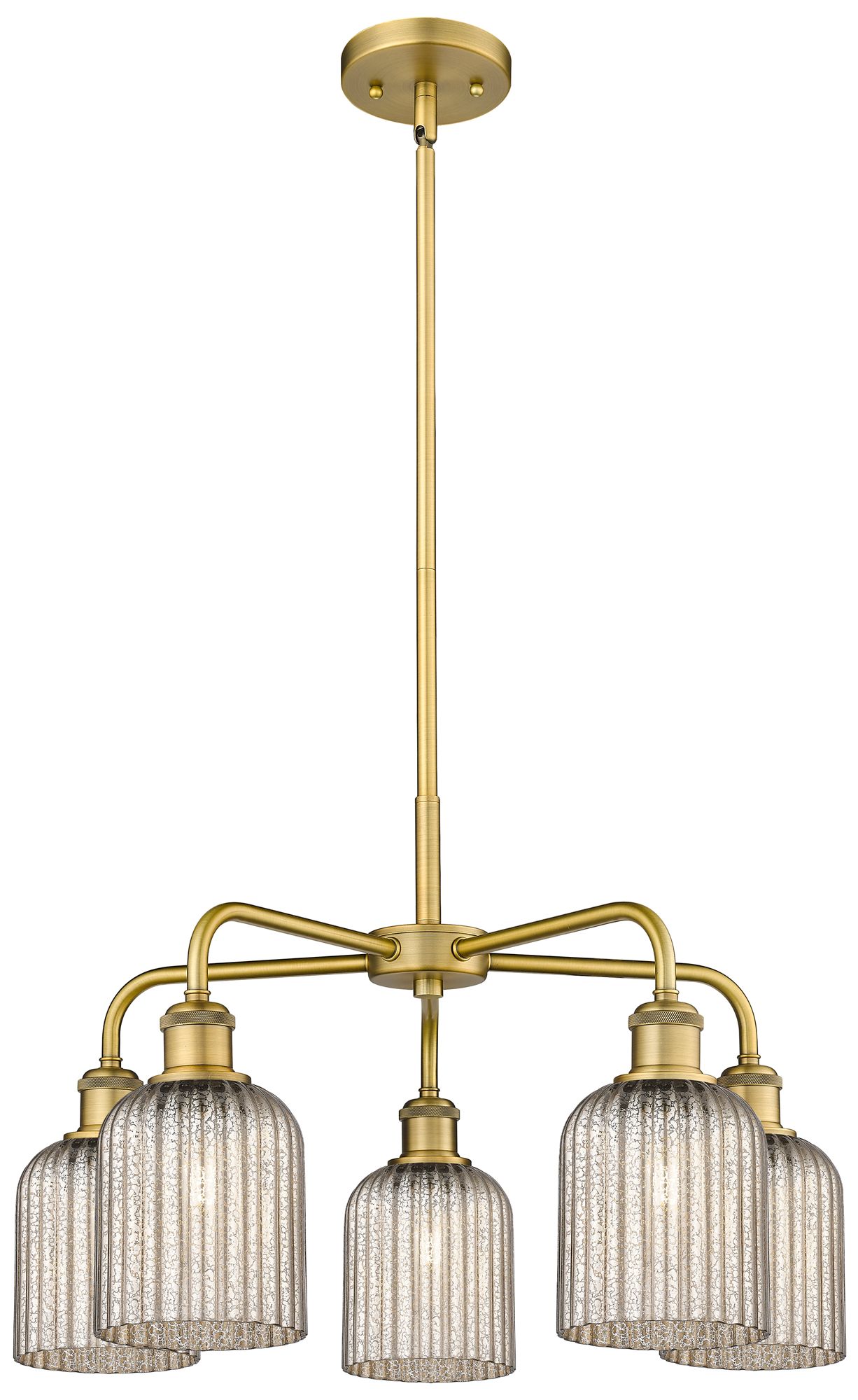 Ballston Bridal Veil 23" 5 Light Stem Hung Chandelier Brass Mercury Shade