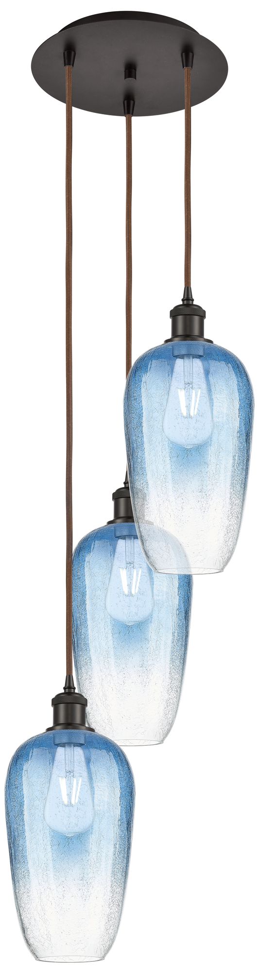 Ballston Brookhaven Flute 14"W 3-Lt Oiled Bronze Cord Pendant w/ Blue Shade
