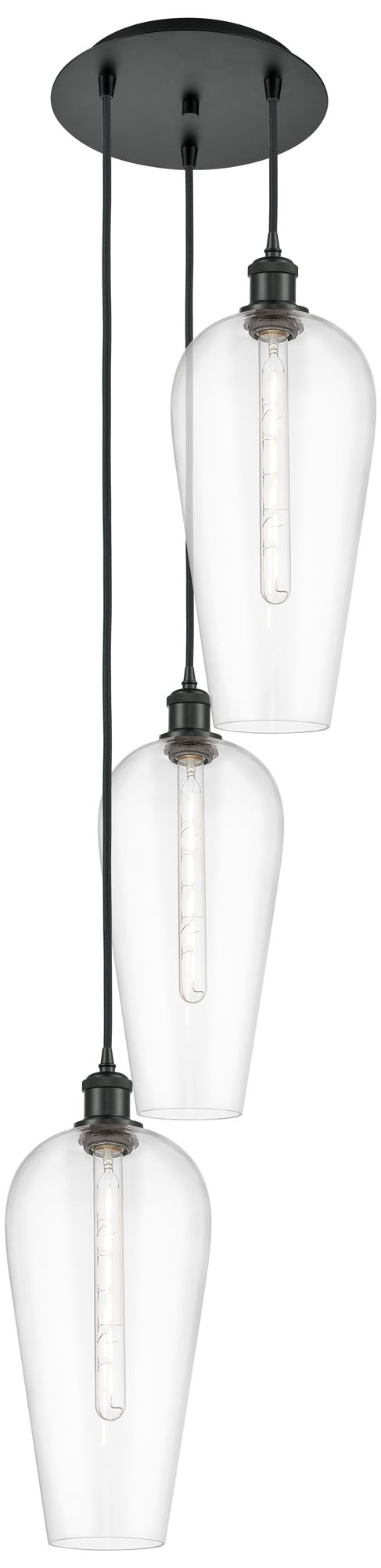 Ballston Chelsea 15"W 3 Light Black Cord Multi Pendant w/ Clear Shade