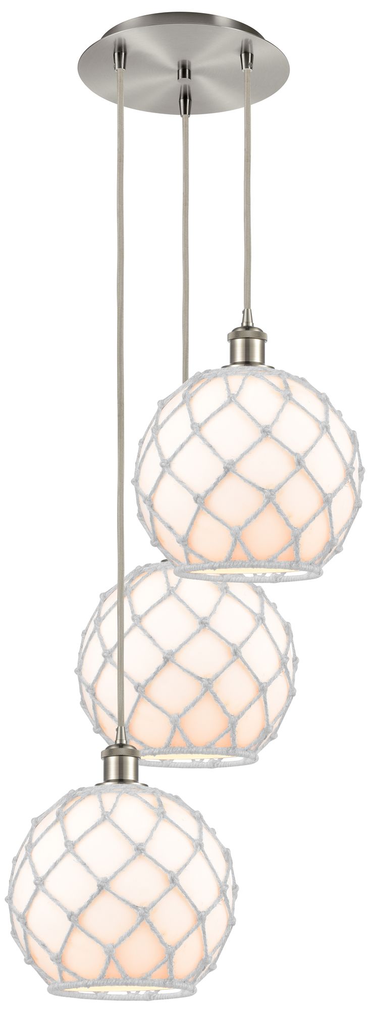 Ballston Farmhouse 17"W 3-Lt Nickel Cord Pendant w/ Clear White Shade