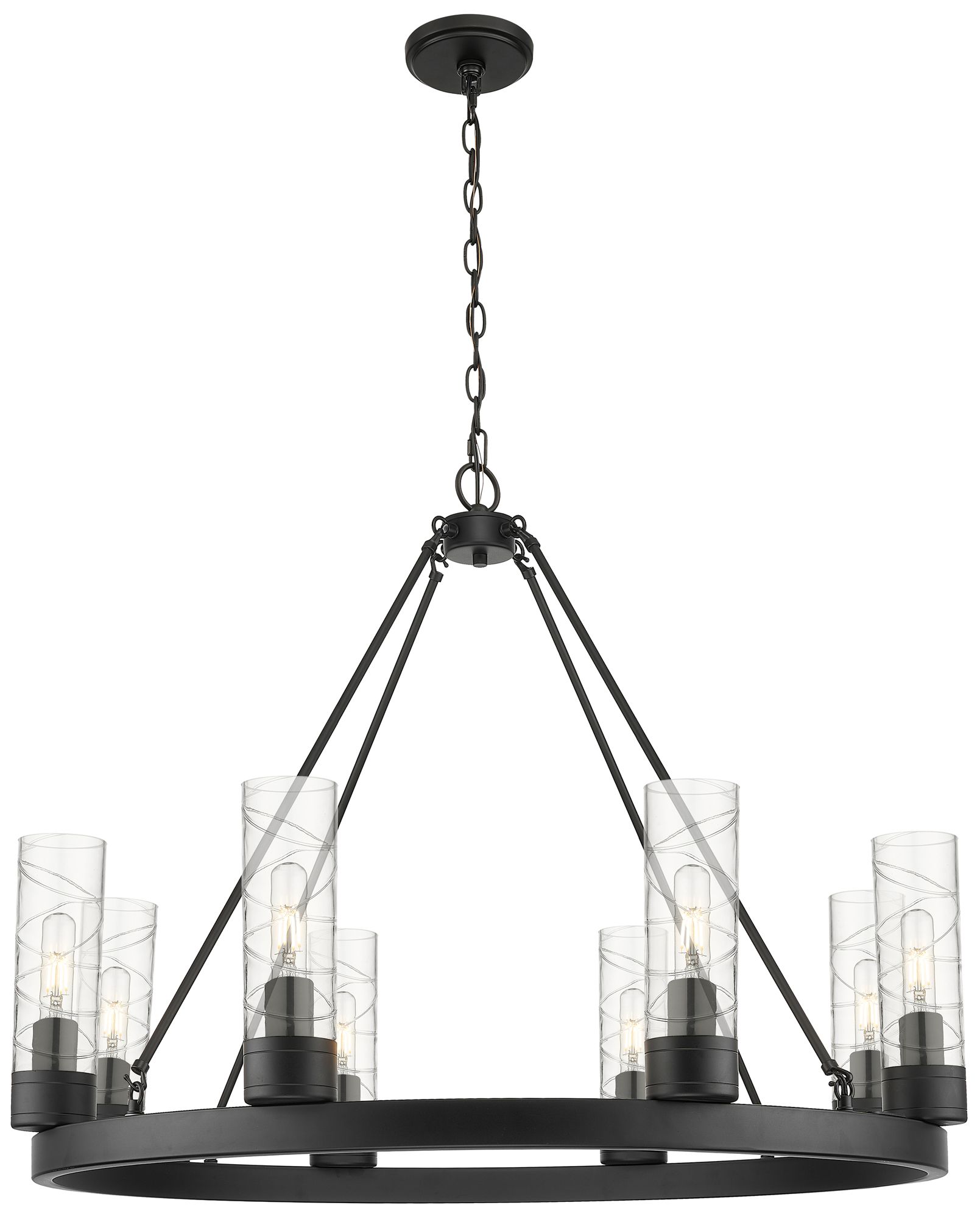 Boreas 36"W 6 Light Matte Black Chandelier With 8" Deco Swirl Shade