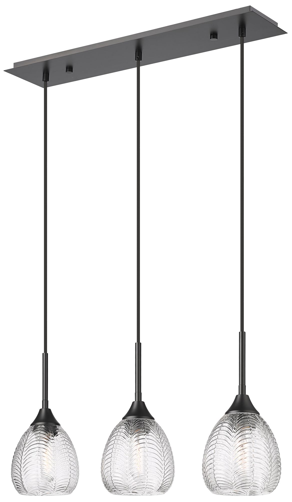 3-Light Matte Black and Plating Brass Island Lamp with Glass