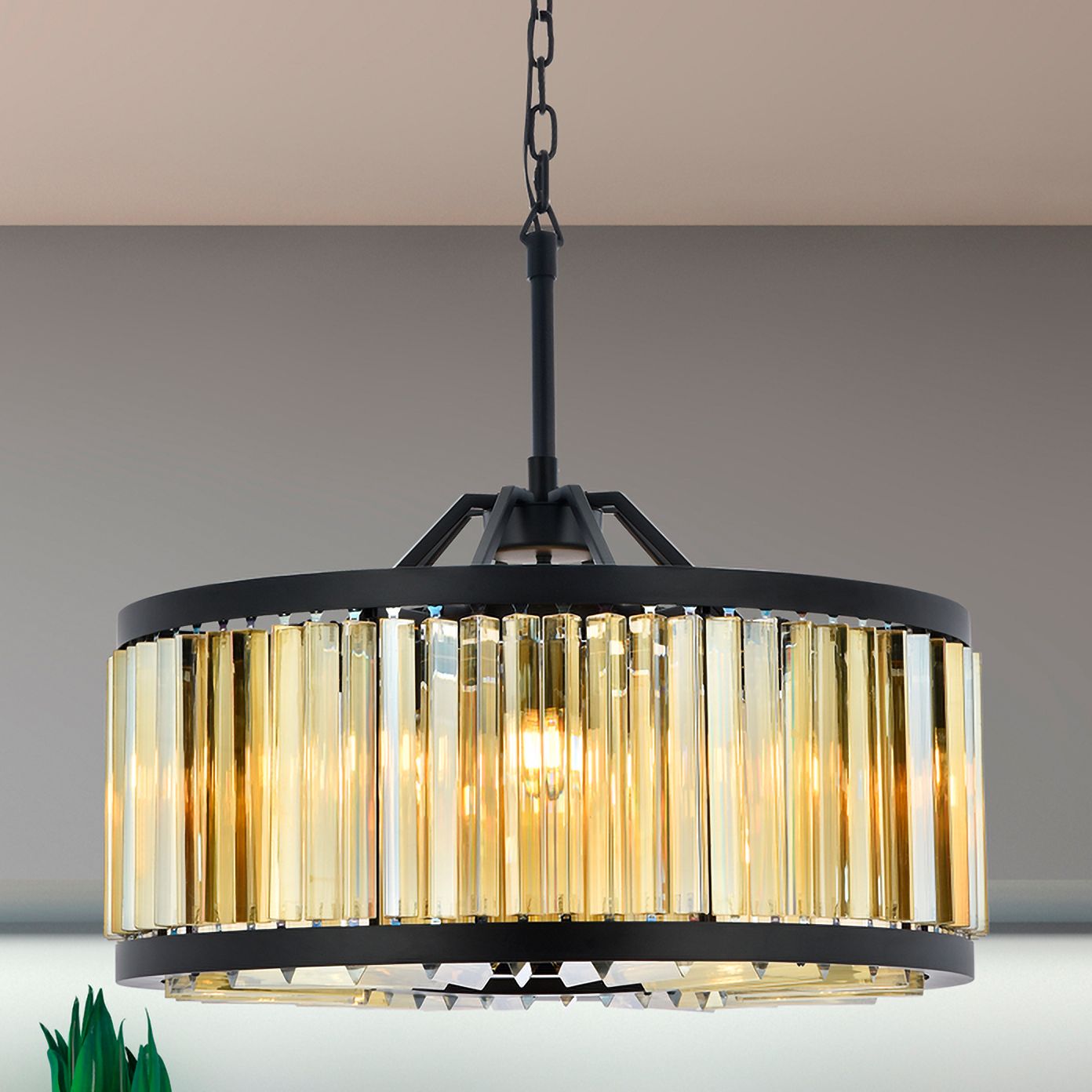 Sydney 9 Lt Matte Black Chandelier Golden Teak