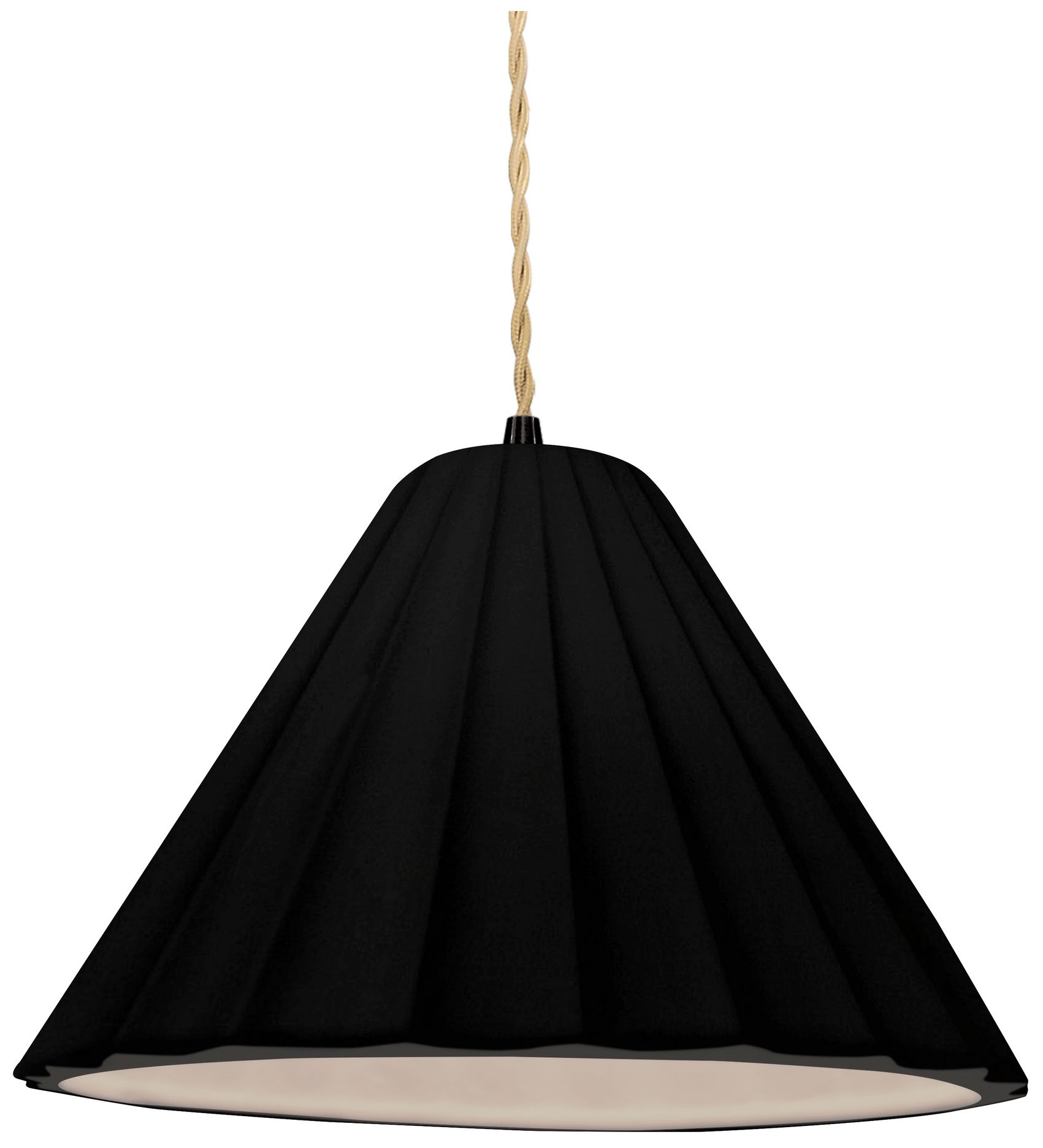 Radiance Pleated Tier 12"W Black LED Pendant w/ Brass Beige Twist Cord