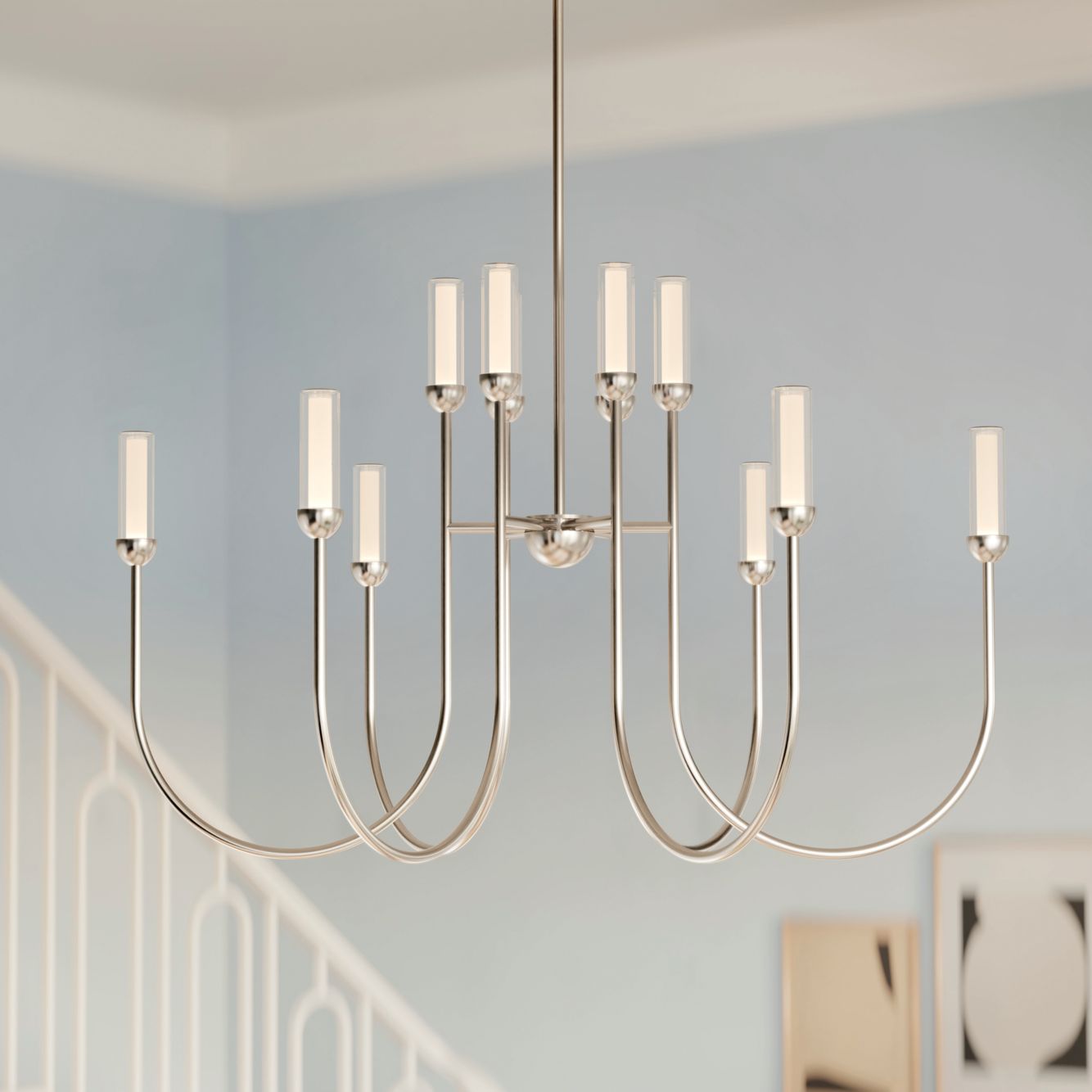 Kichler Moraine 40 Inch LED 12 Light 2-Tier Chandelier in Polished Nickel
