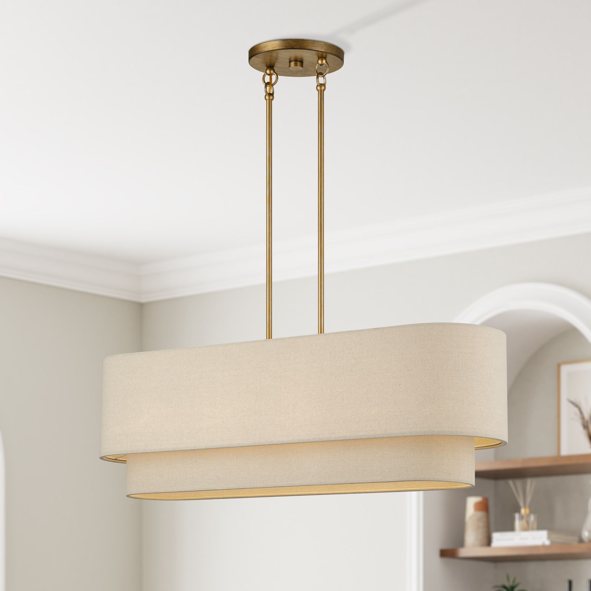 Meridian 3 Light Antique Brass Extra Large Linear Chandelier