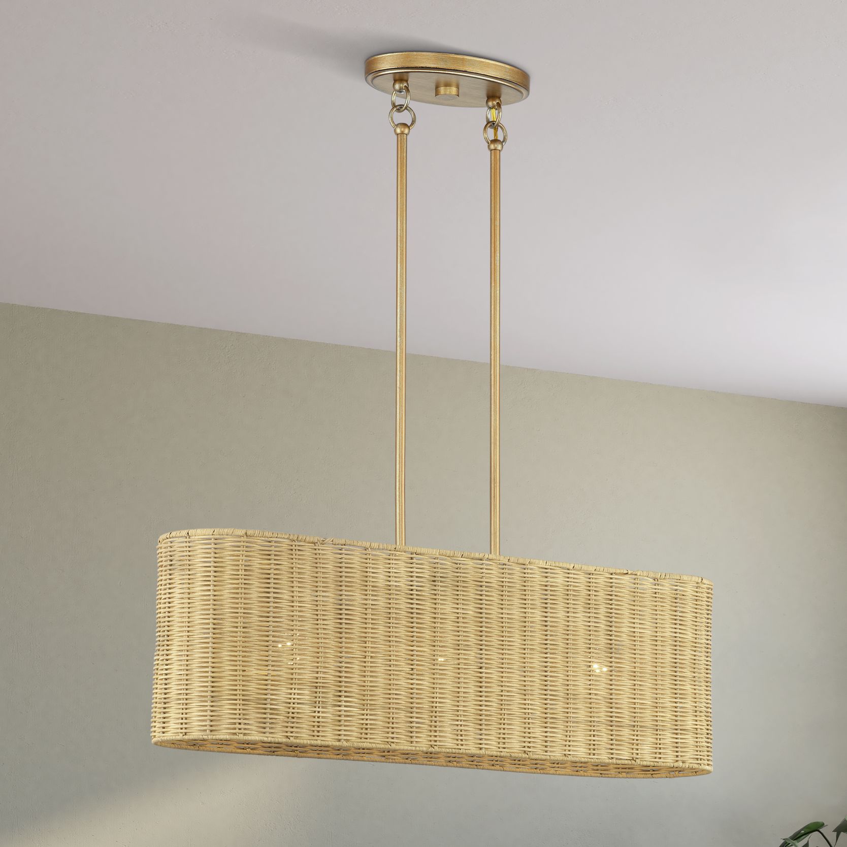 Weavington 4 Light Antique Gold Leaf Large Linear Chandelier