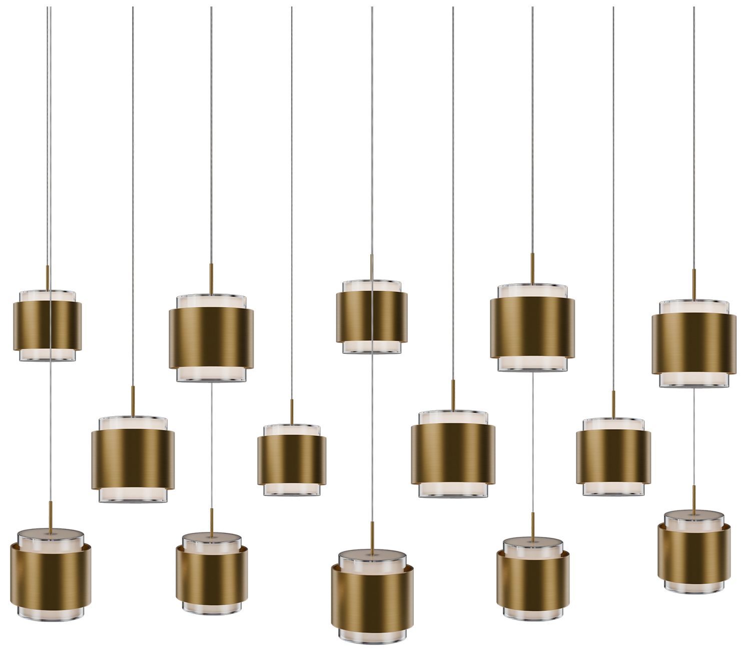 Banded 5"H x 20"W 13-Light Multi-Light Pendant in Aged Brass