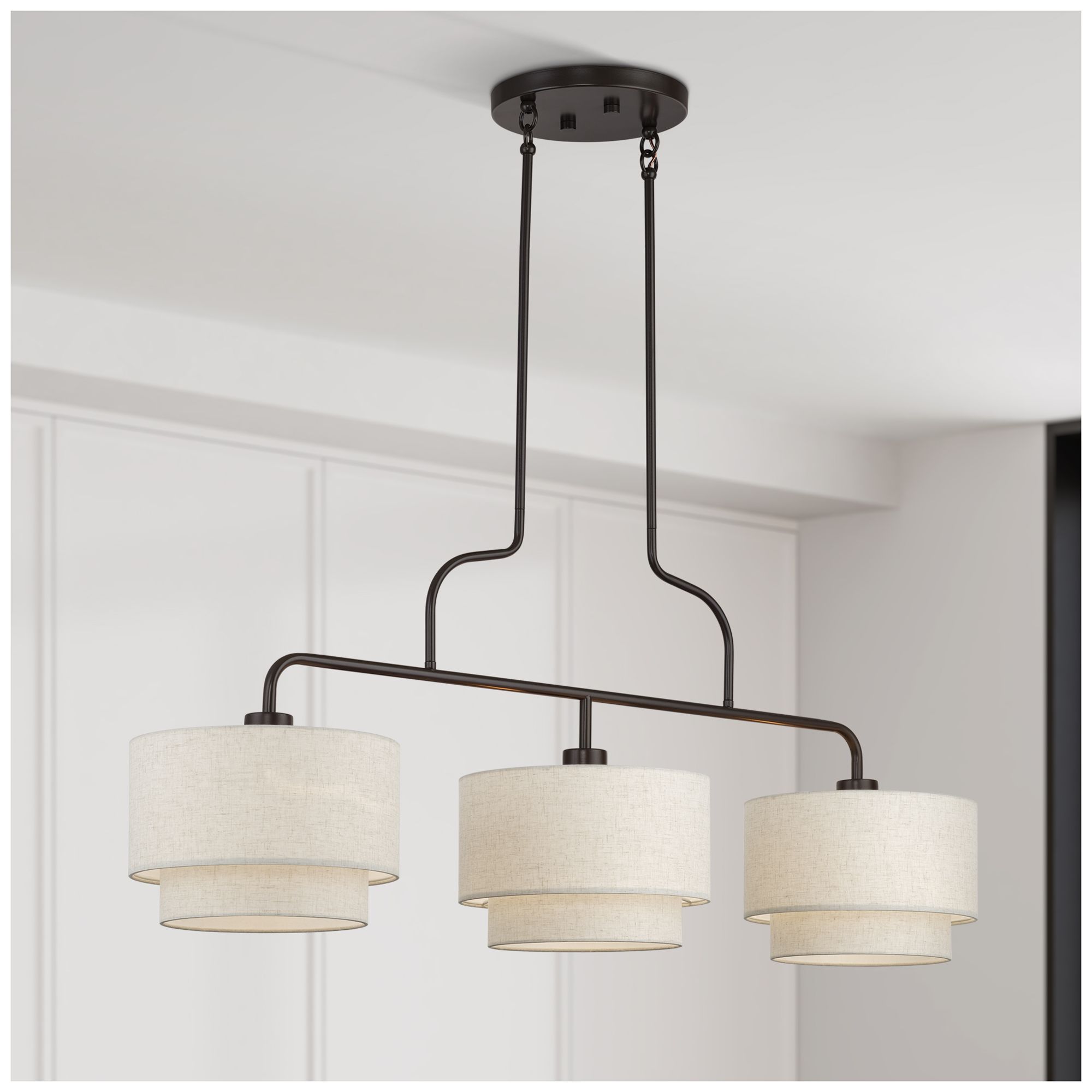 Meridian 3 Light Black Extra Large Linear Chandelier
