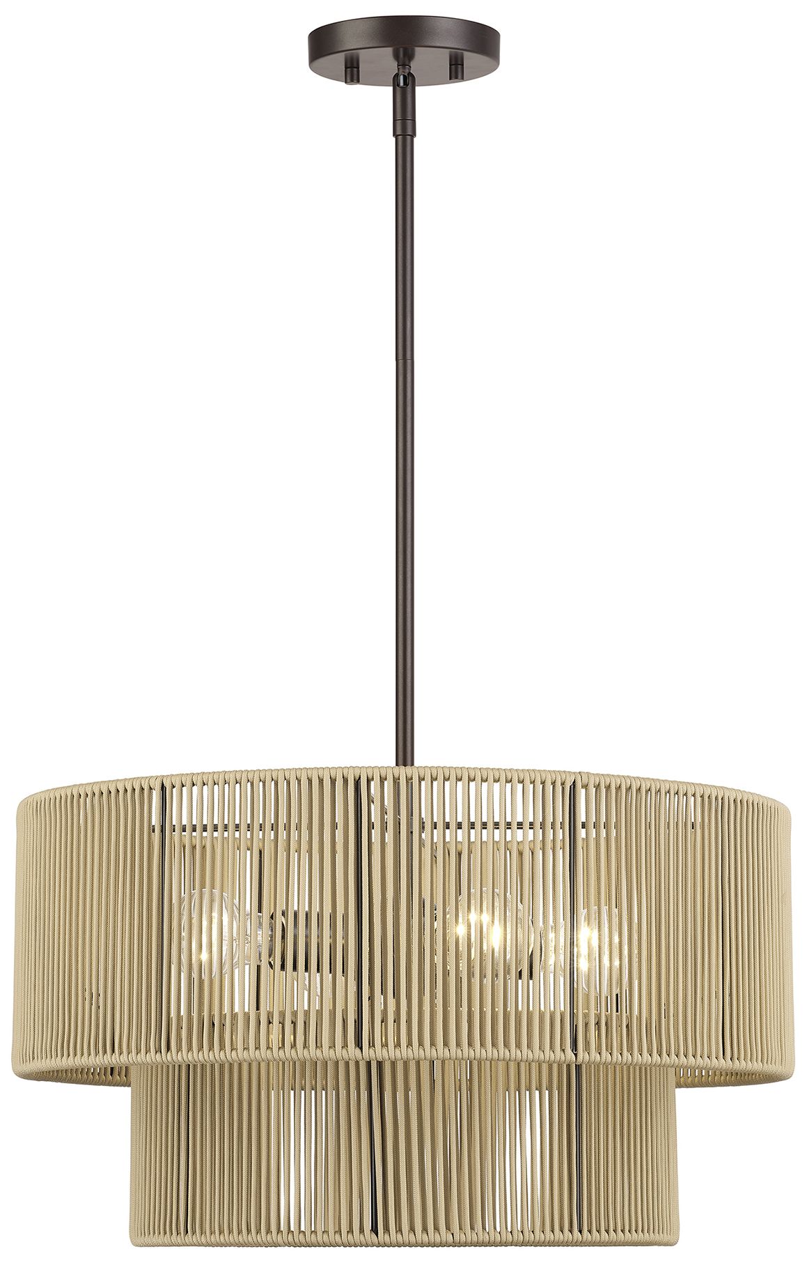 Exos 16" Wide 3-Light White Pendant w/ Natural Anna Shade