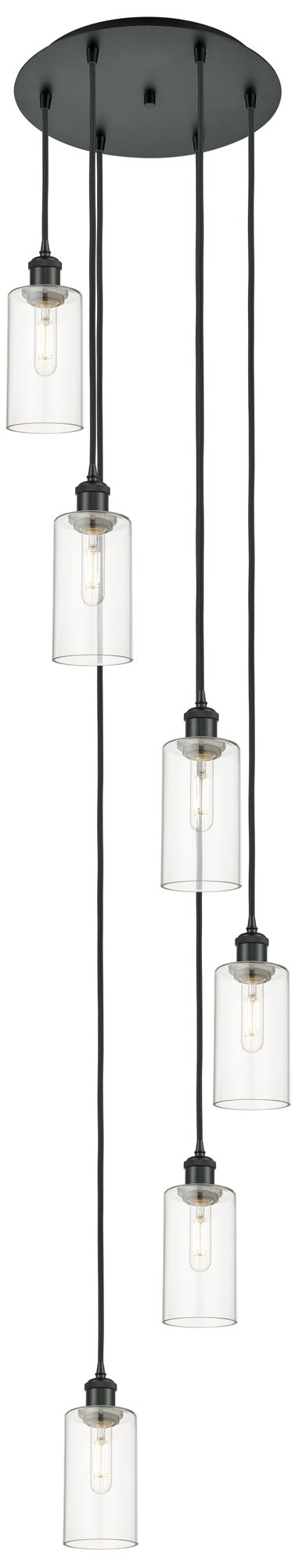 Crown Point 6 Light 16" Cord Hung Multi Pendant Matte Black Clear Shade