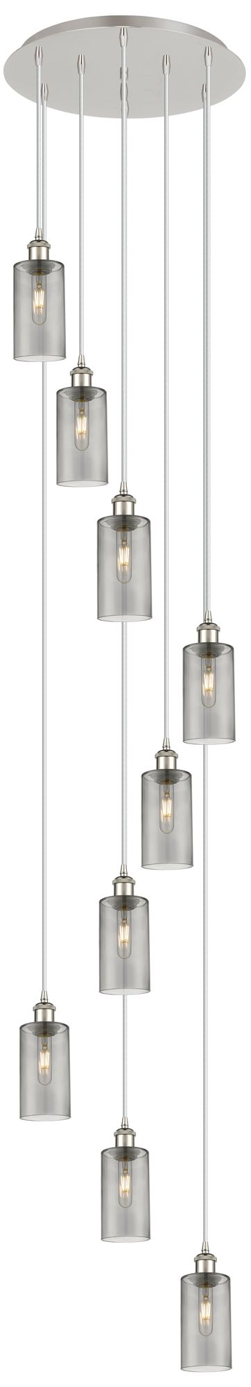 Crown Point 9 Light 19" Cord Hung Multi Pendant Nickel w/ Light Smoke Shade