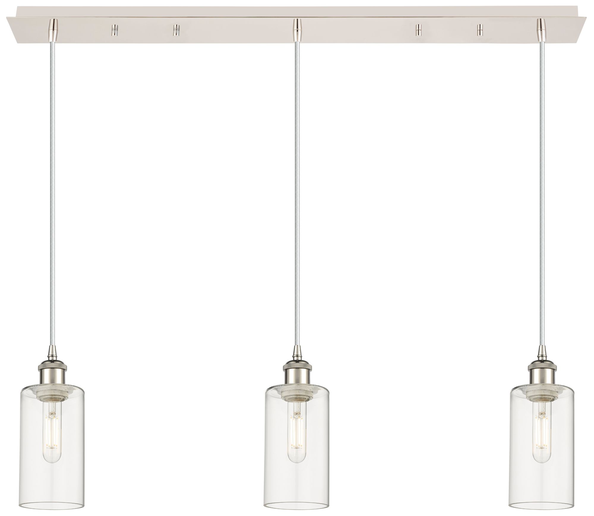 Crown Point 3 Light 37" Cord Hung Linear Pendant Nickel w/ Clear Shade