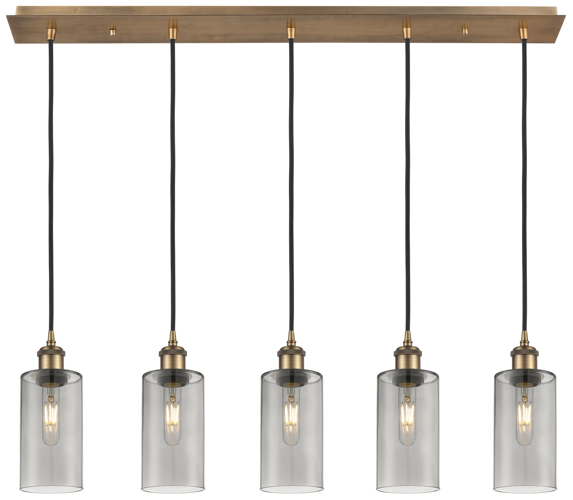 Crown Point 5 Light 37" Cord Hung Linear Pendant Brass w/ Light Smoke Shade